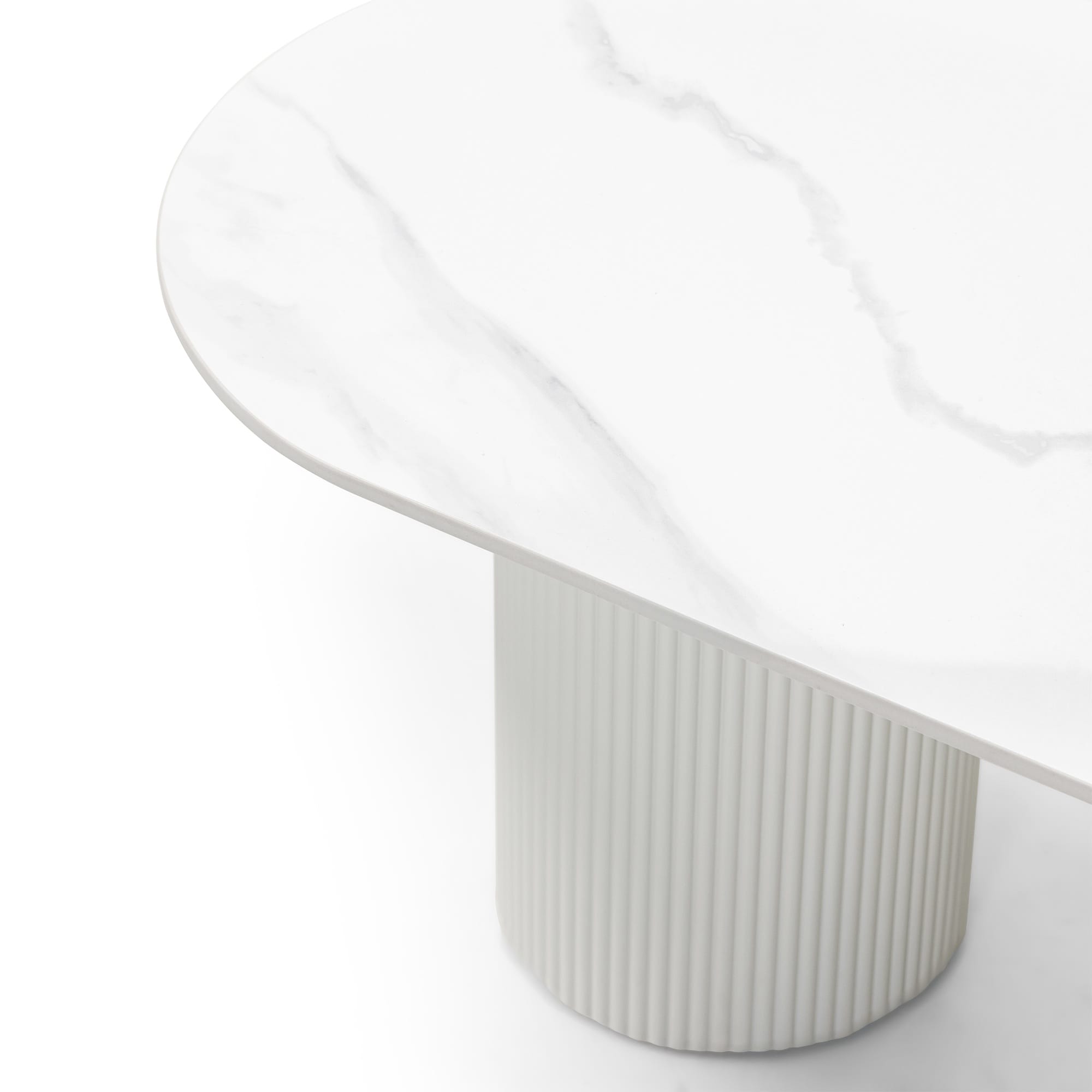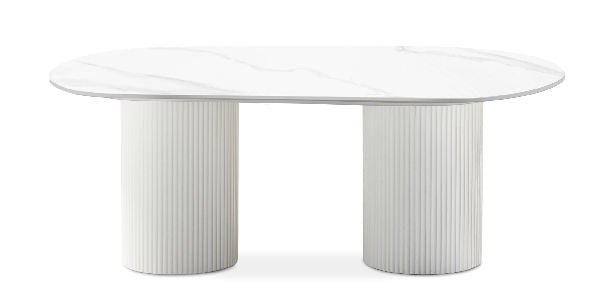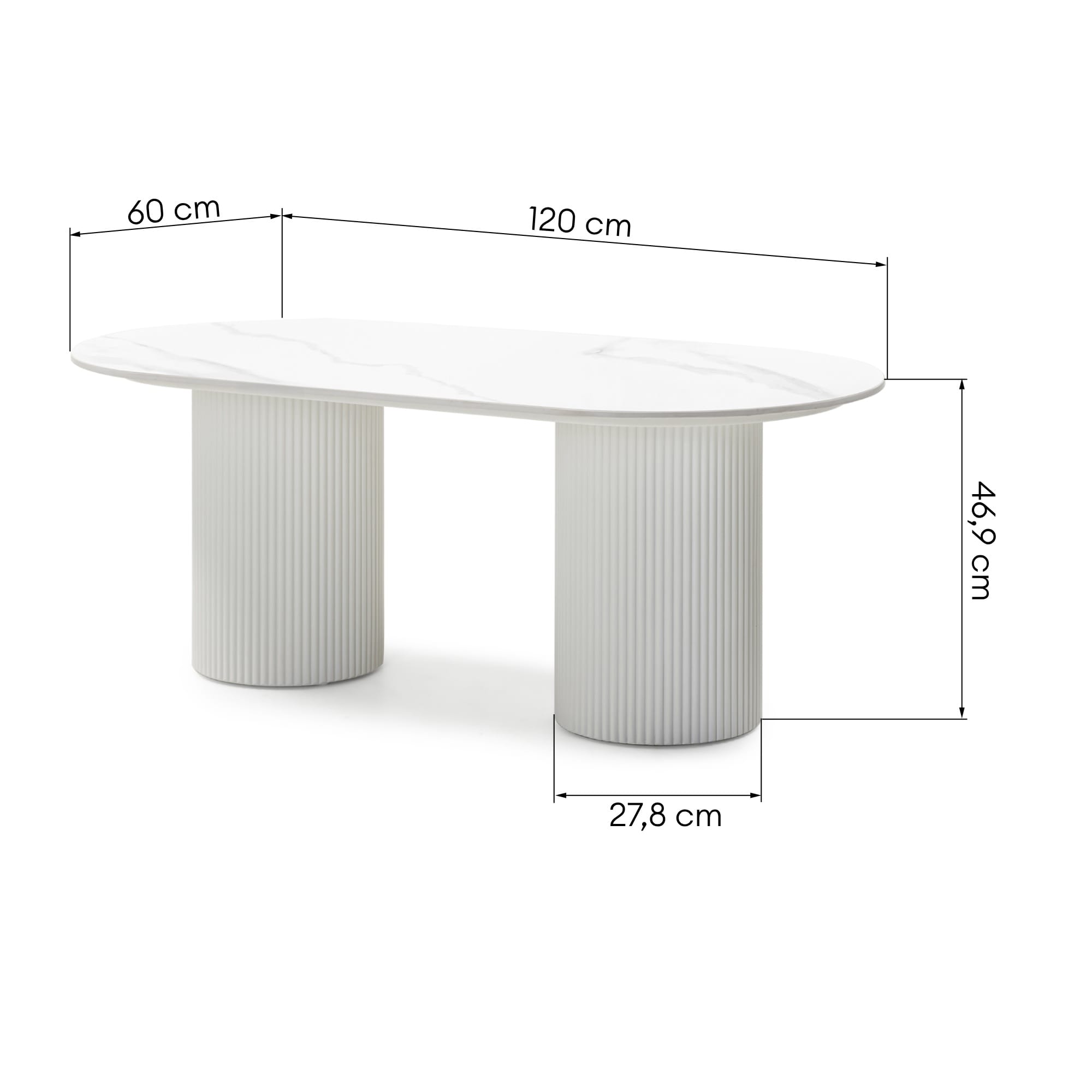 Apulia kavos staliukas – tai subtilios prabangos ir modernios estetikos derinys. Jo ovalus marmuro imitacijos stalviršis kuria elegantišką įspūdį, o šviesos atspindžiai ant blizgaus paviršiaus suteikia interjerui gylio ir rafinuotumo.