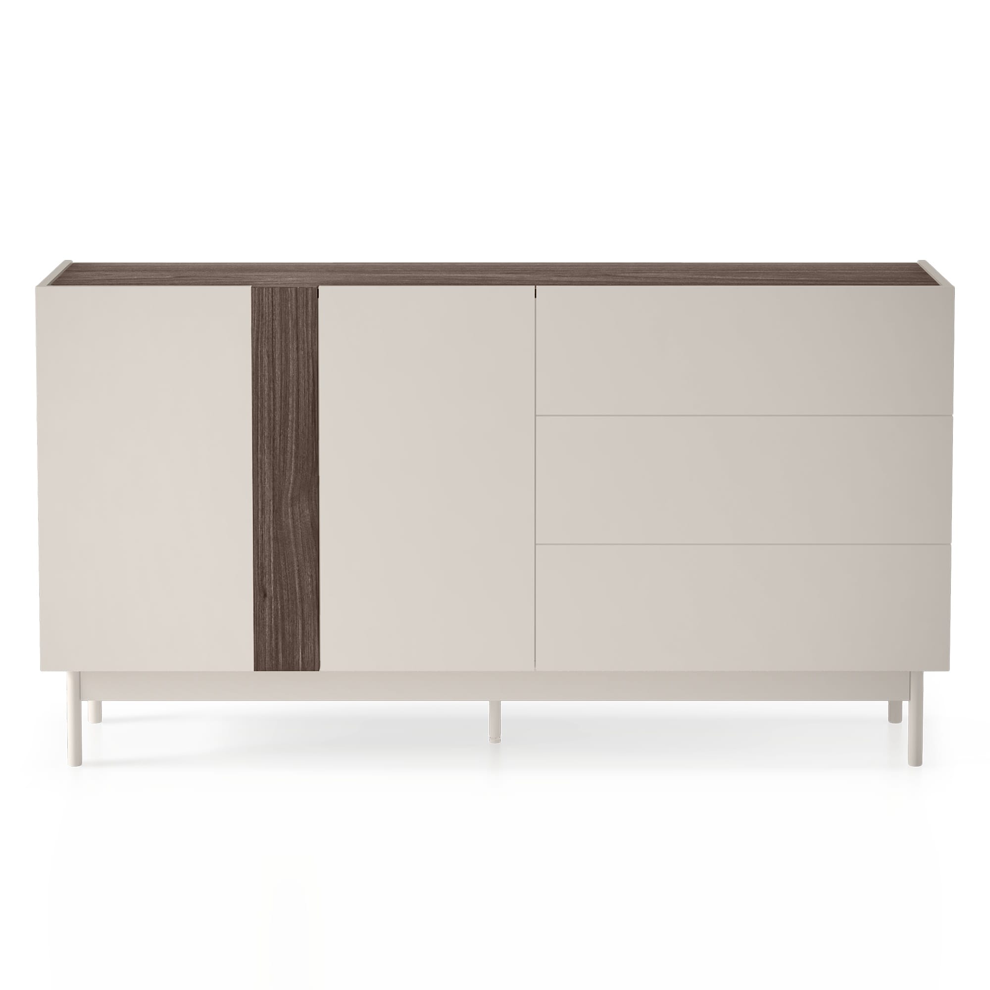 Berula Cashmere komoda – tai baldas, kuriame šviesus kašmyras susitinka su sodria riešutmedžio mediena, sukuriant tobulą balansą tarp šiuolaikinės elegancijos ir natūralios šilumos.