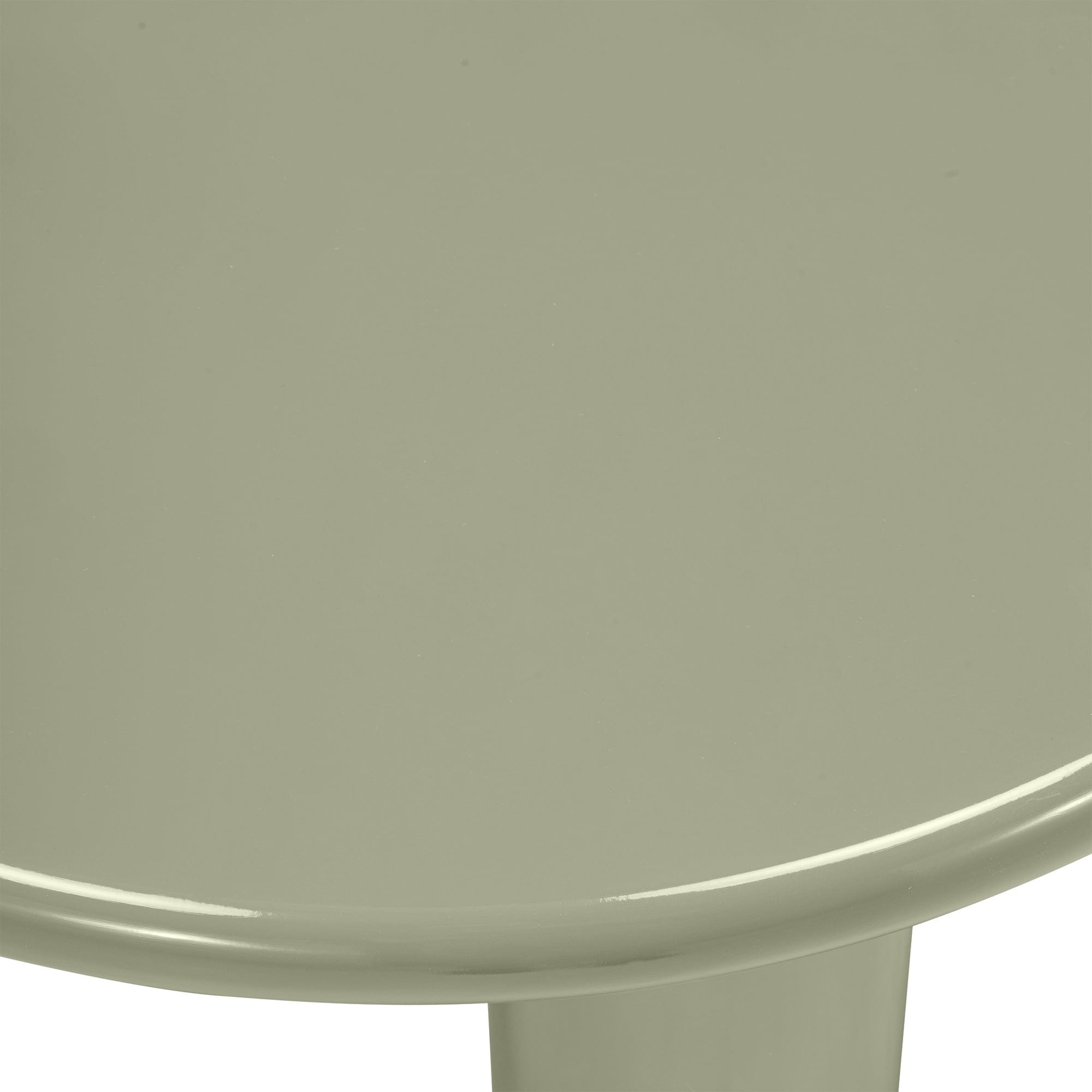 Blizgi apdaila sustiprina spalvos gylį ir leidžia paviršiui subtiliai reaguoti į šviesą. Priklausomai nuo apšvietimo, alyvuogių tonas gali atrodyti šiltesnis arba gilesnis, todėl staliukas natūraliai prisitaiko prie skirtingų interjero nuotaikų. Paviršius lygus, vientisas, be ryškaus rašto, todėl forma ir spalva išlieka pagrindiniais akcentais.