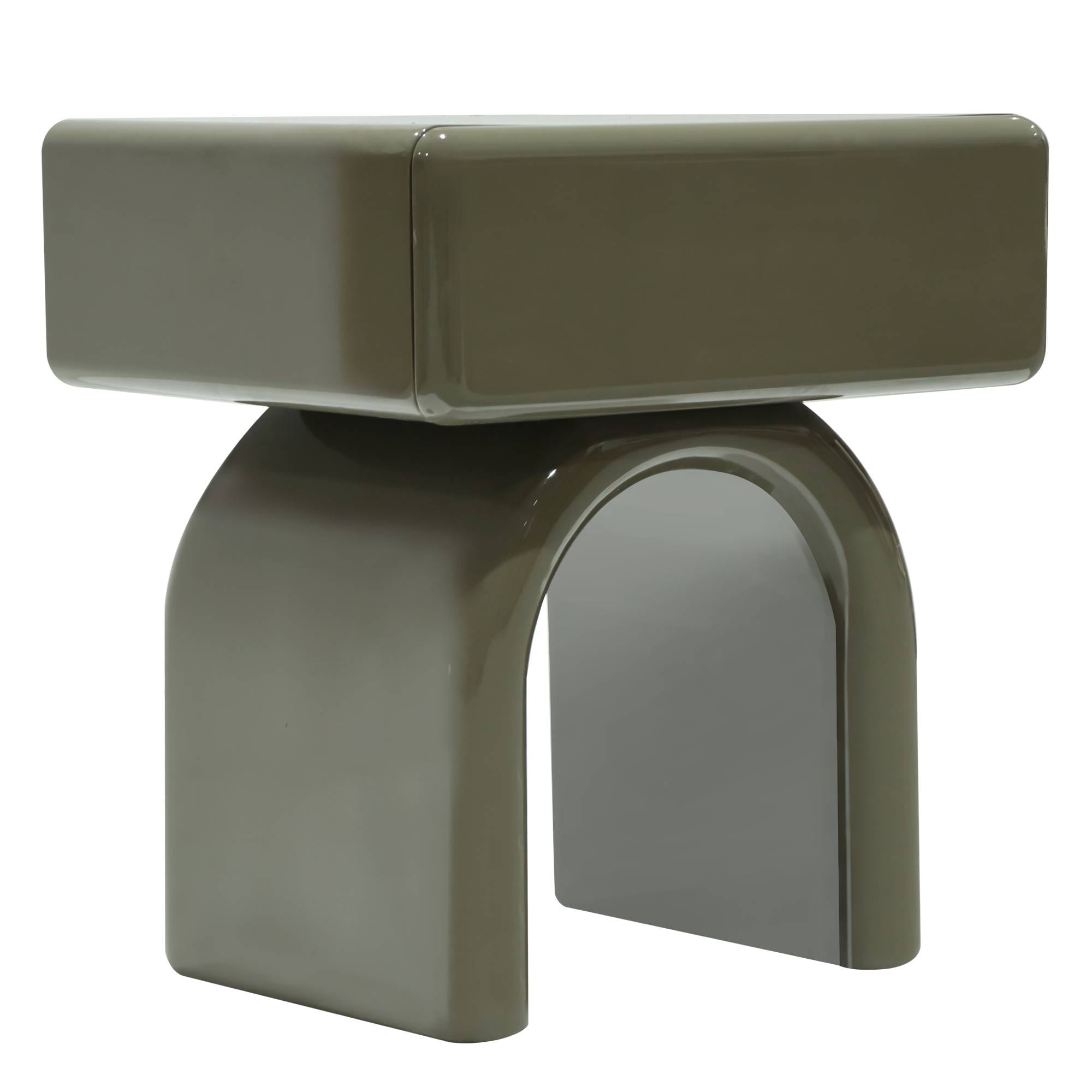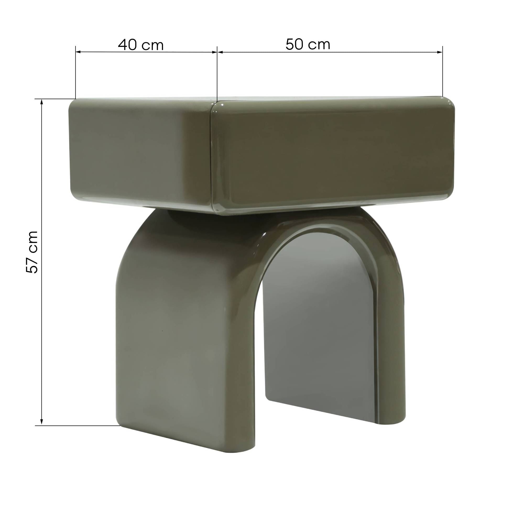 Blush Olive – naktinis staliukas, kuriame forma tampa pagrindiniu akcentu. Arkos siluetas kuria architektūrišką, aiškų kontūrą, todėl baldas iš karto išsiskiria savo forma, o ne detalėmis ar dekoru. Tai sprendimas tiems, kurie miegamajame ieško charakterio per dizaino linijas.