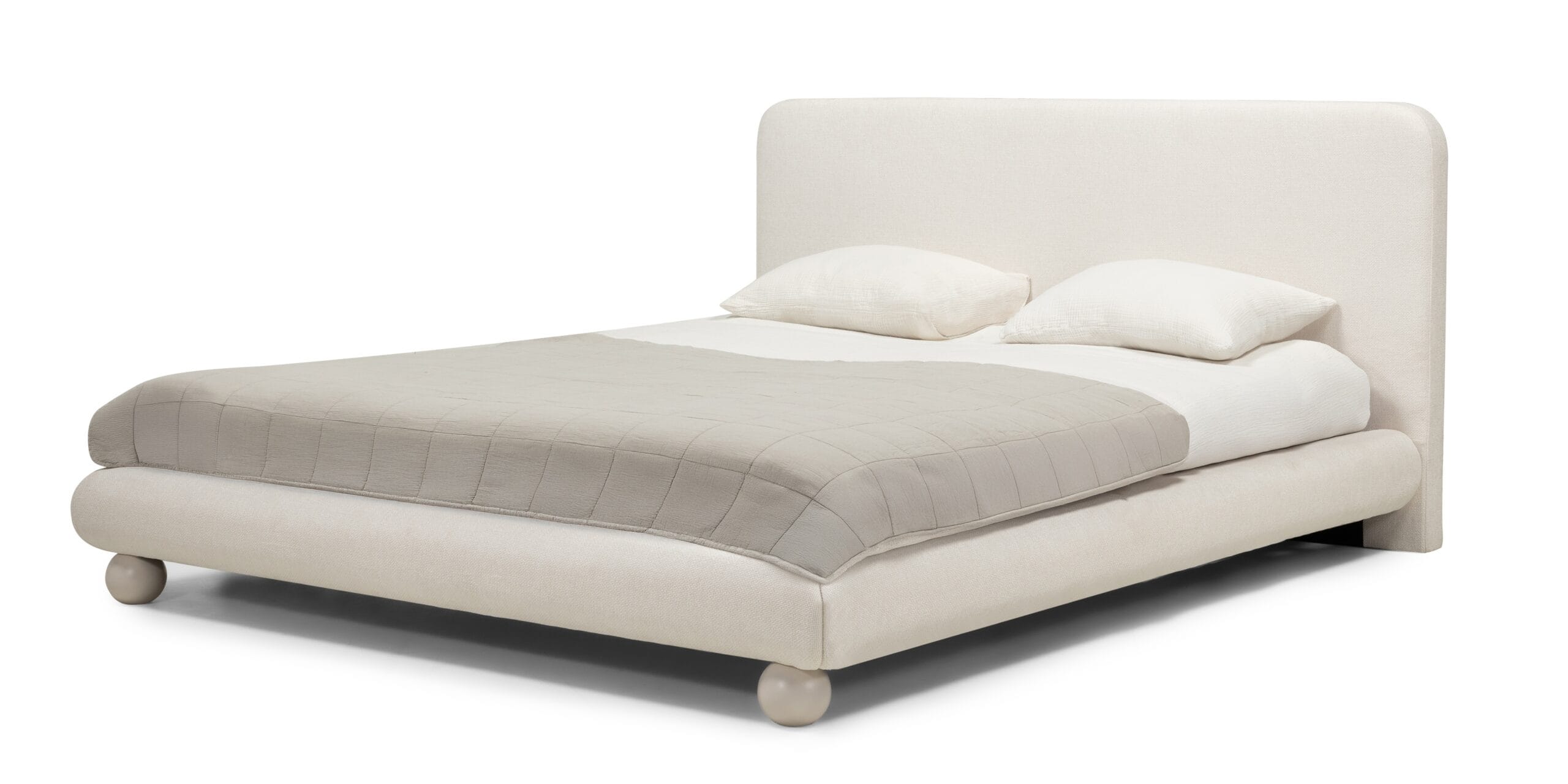 Booli Beige – miegamojo lova, kurioje svarbi forma, paviršius ir proporcijų balansas.