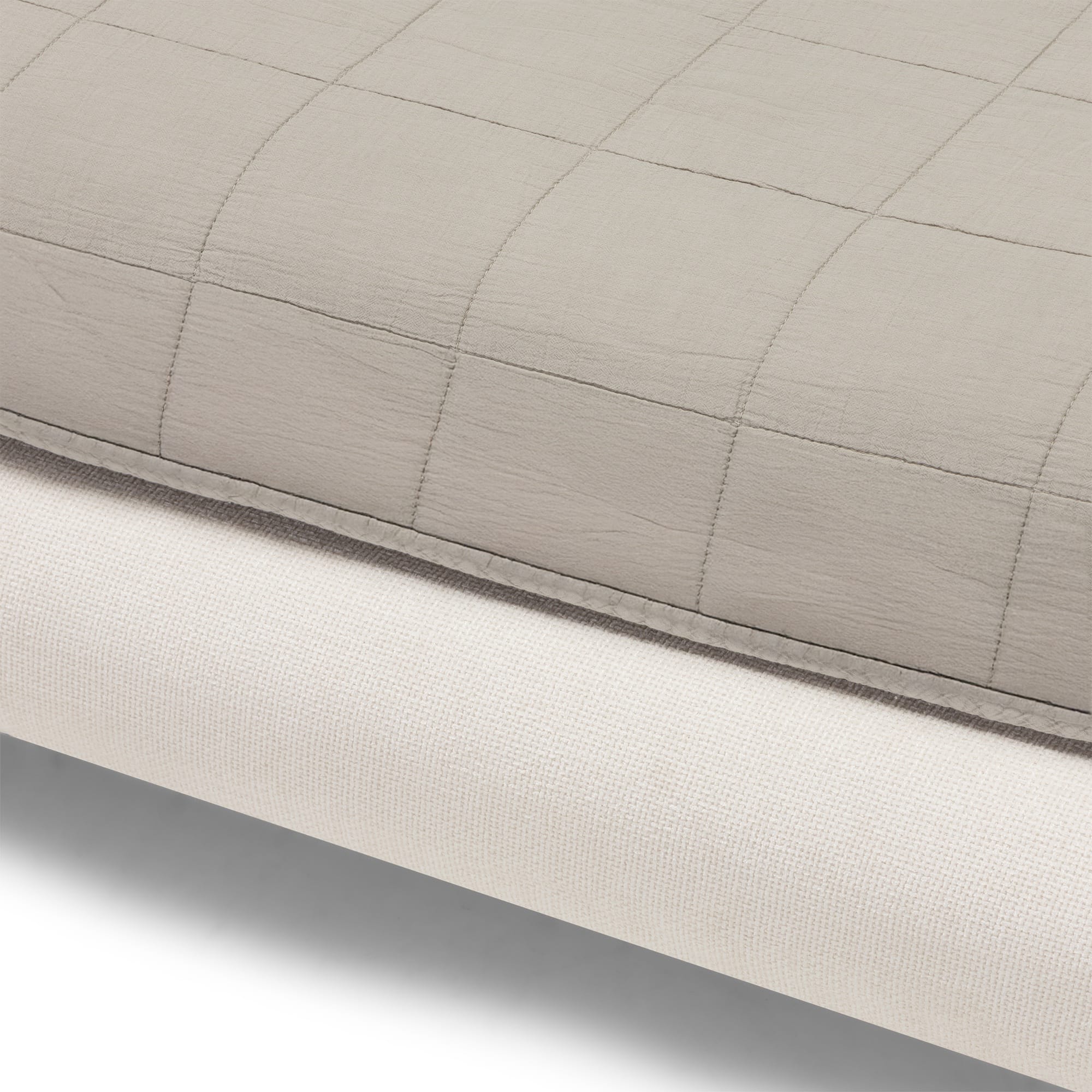 Apmušalai pagaminti iš minkšto, smėlio spalvos audinio. Spalva neutrali, lengvai derinama prie įvairių medžiagų ir spalvinių sprendimų. Audinio paviršius švelnus, be ryškios tekstūros, todėl lova išlieka vizualiai lengva ir neperkrauna erdvės. Šviesus atspalvis leidžia lovai harmoningai įsilieti tiek į šiuolaikinius, tiek į ramesnius interjerus.