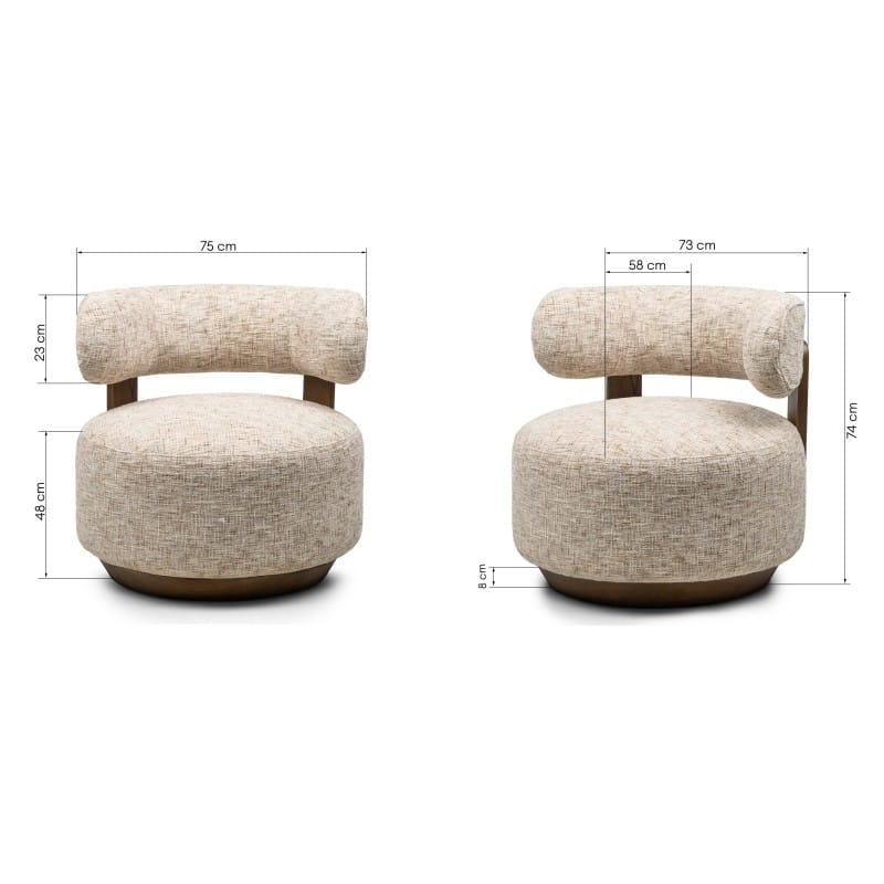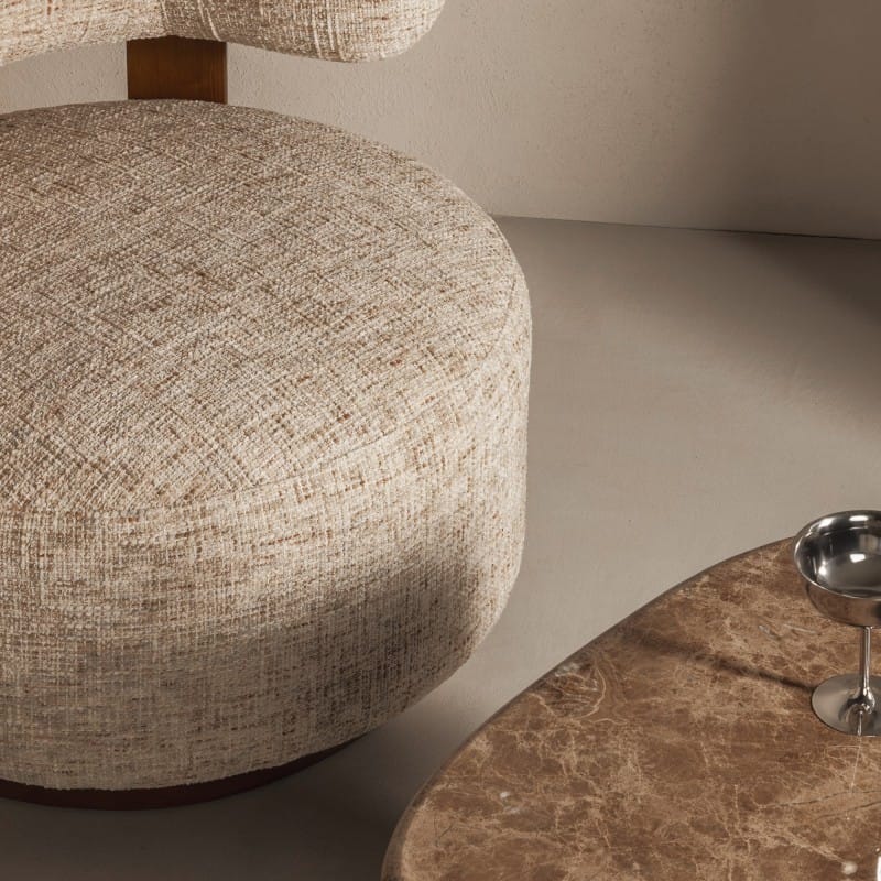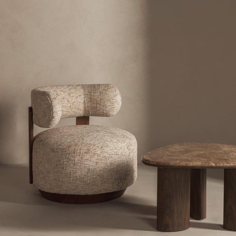 Dolce Grey Beige fotelis – baldas, kuris sujungia komfortą, formą ir natūralius akcentus, kurdamas harmoningą ir estetišką interjero erdvę.