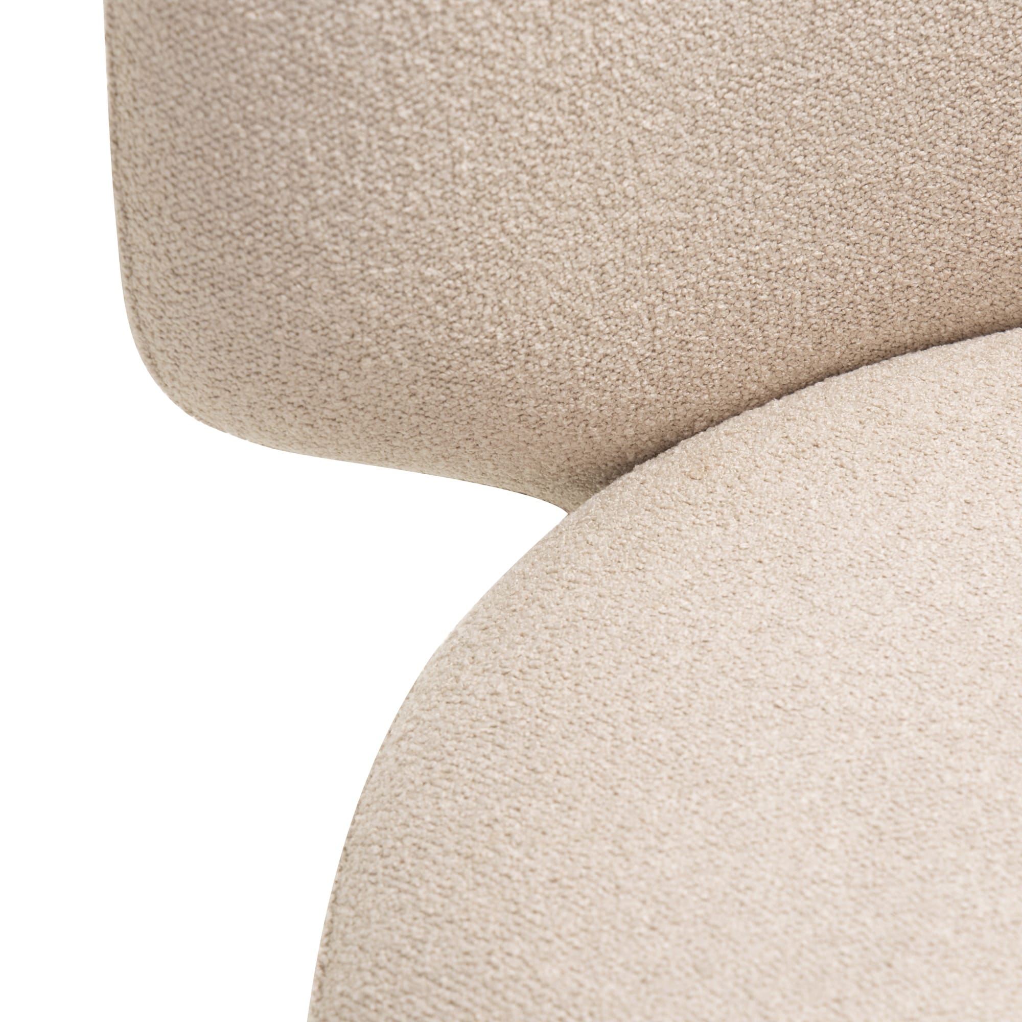 Elaine Beige Boucle – fotelis su aiškiu charakteriu, aptrauktas subtilios tekstūros buklė audiniu ir išsiskiriantis skulptūriška forma.