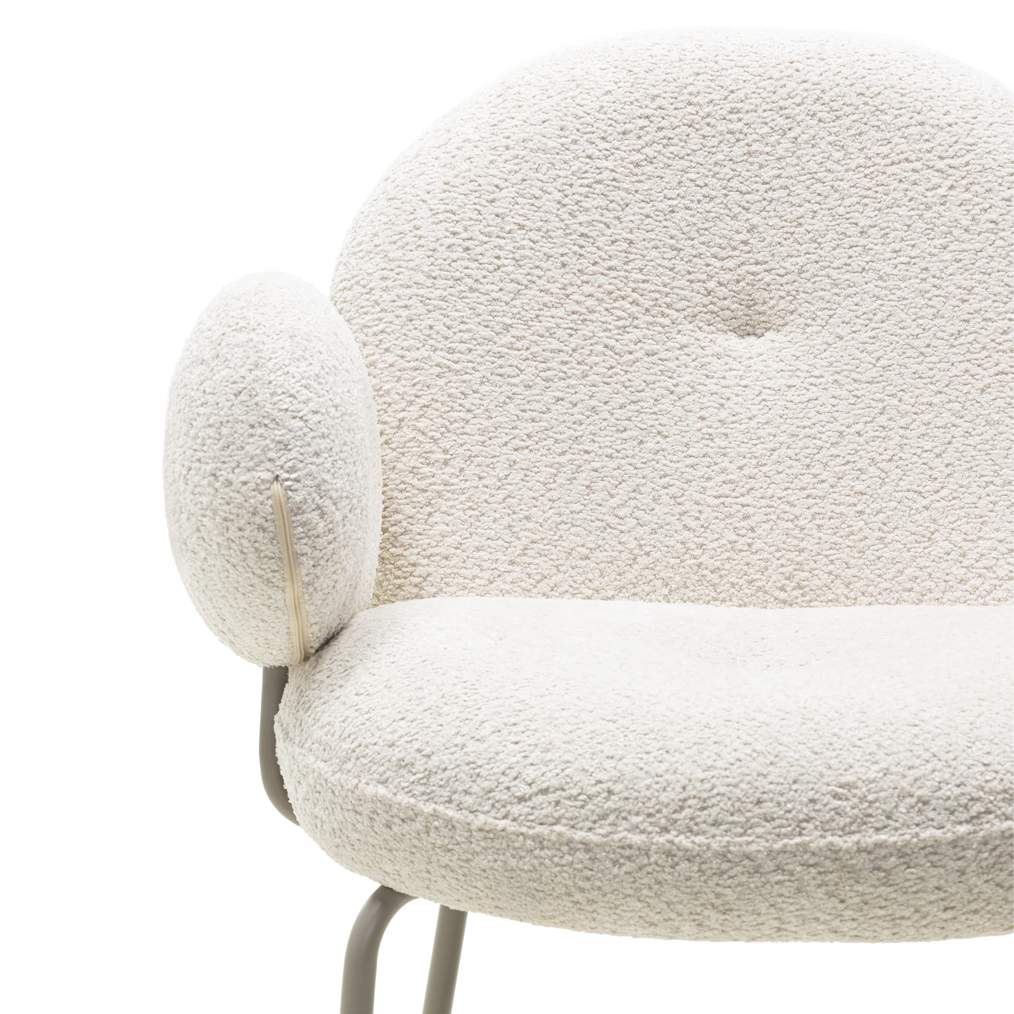 Fiori Beige Bouclé krėslas – tai dizaino kūrinys, kuris ne tik papuošia interjerą, bet ir sukuria emociją. Jo apvalios formos, švelnus bouclé audinys ir subtilūs porankiai kalba apie estetiką, kuri gimsta iš komforto.