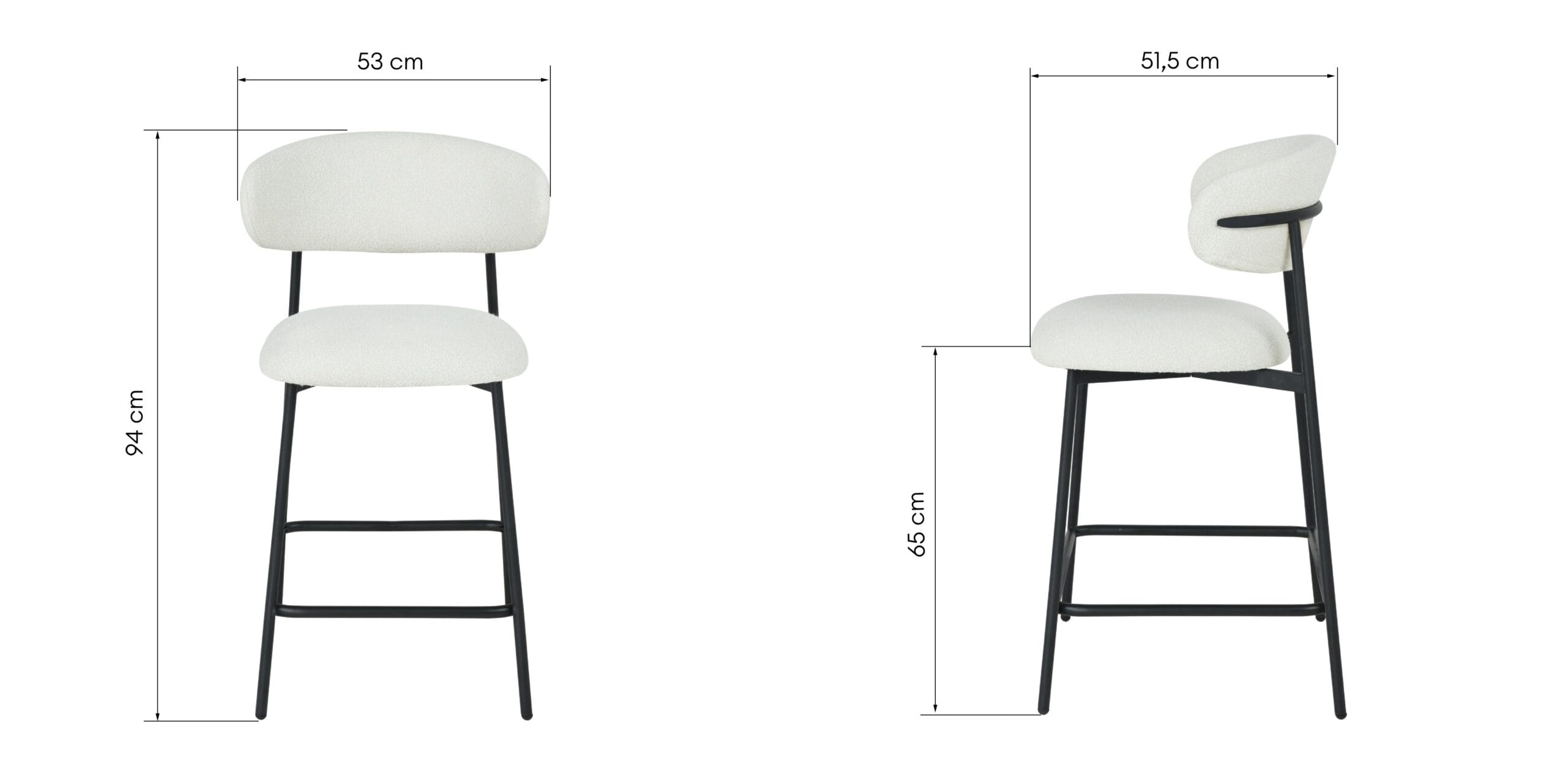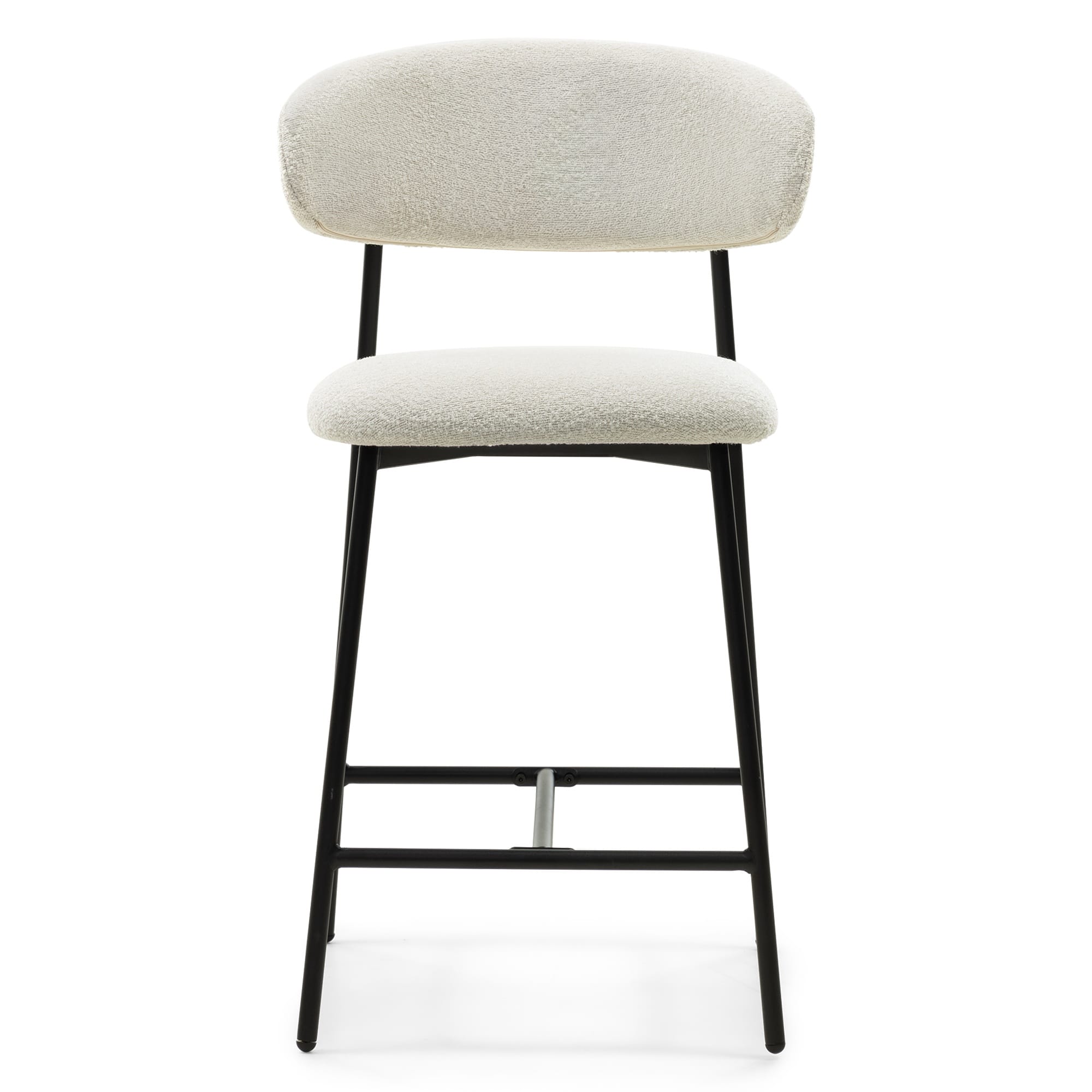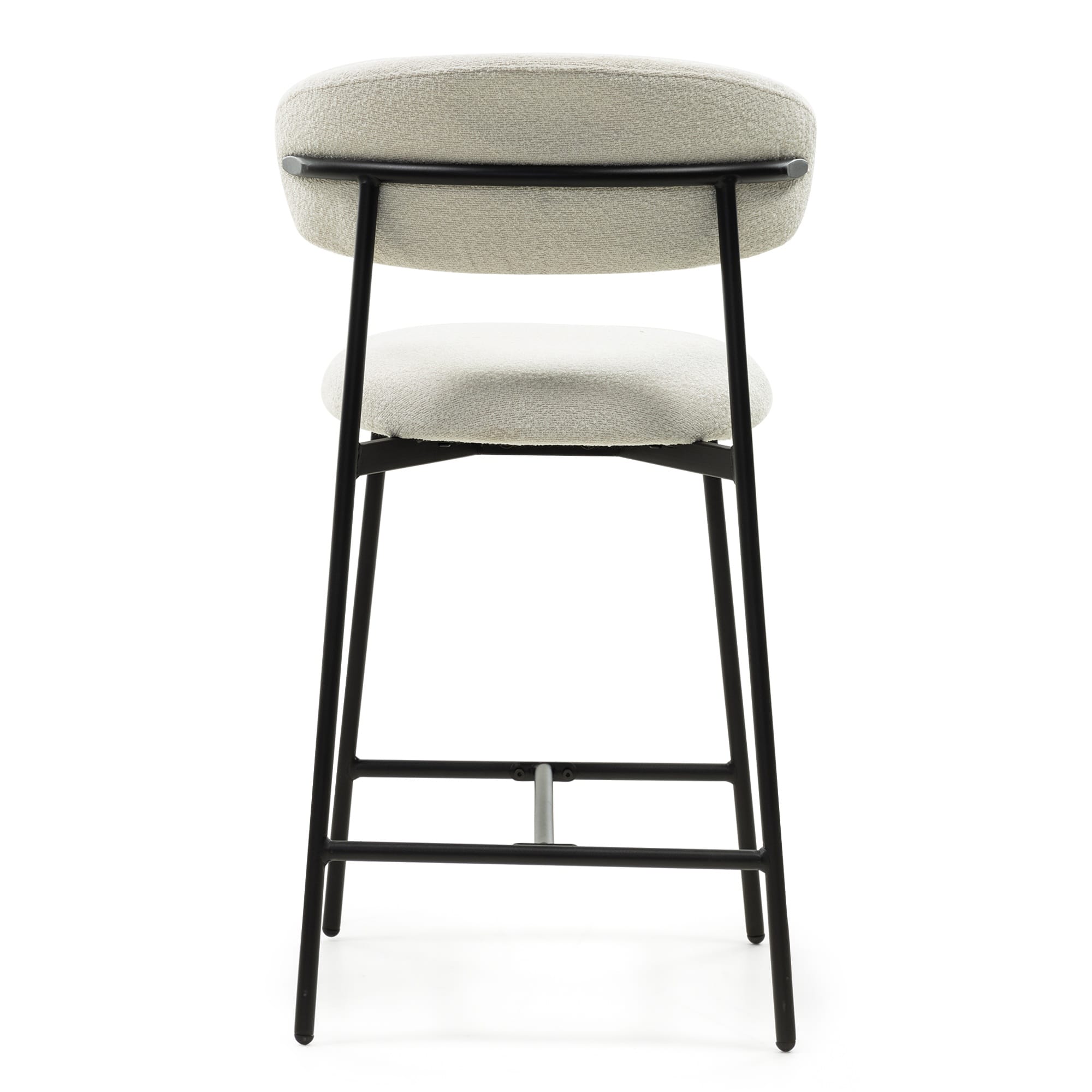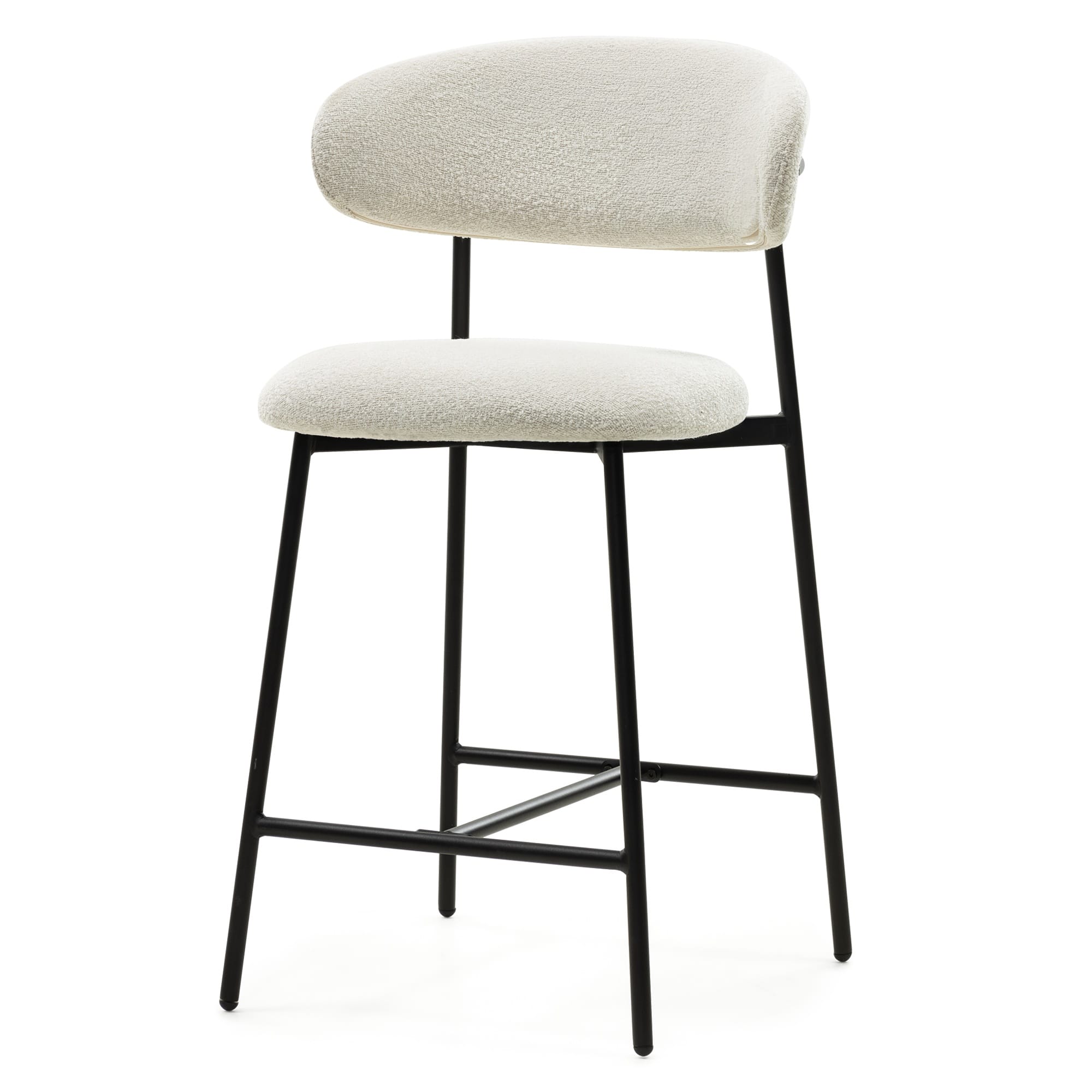 Fresno baro kėdė – šviesaus bouclé audinio ir juodo metalo kontrastas, kuris suteikia interjerui modernumo ir elegantiško balanso pojūtį.