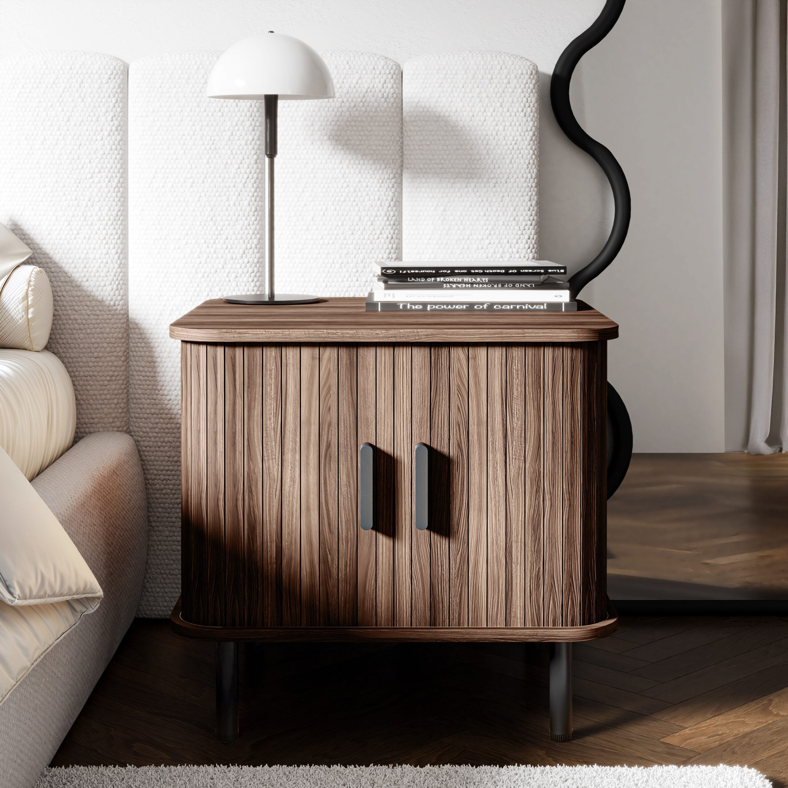 Gliss – naktinis staliukas, kuris atrodo tarsi iš dizaino žurnalo. Apvali forma ir lamelių fasadas kuria balansą tarp modernumo, lengvumo ir prabangos.
