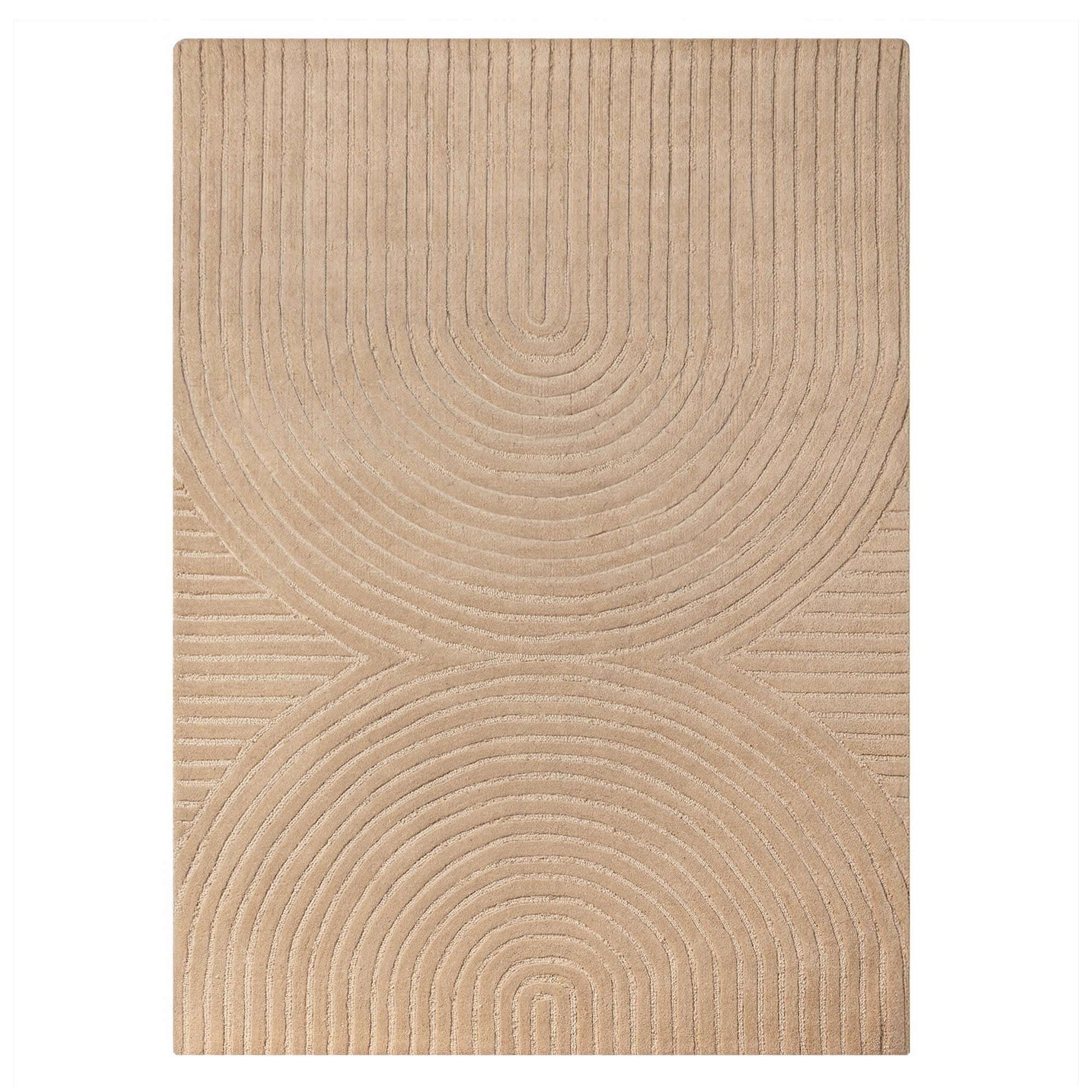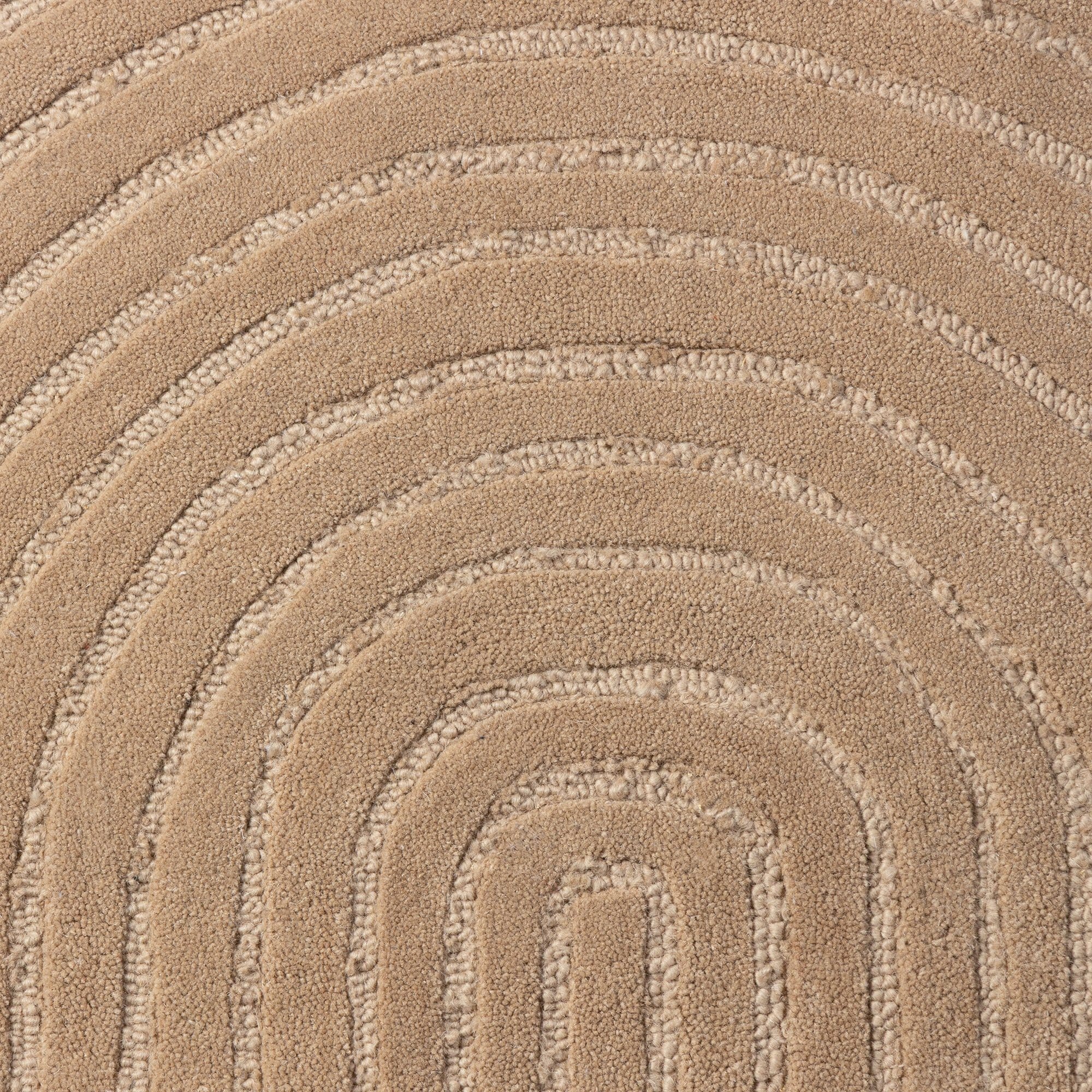 Pagamintas iš aukštos kokybės vilnos, šis kilimas pasižymi išskirtiniu minkštumu, elastingumu ir šiluma. Jį puošia rankomis siūtas arkos raštas, sukuriantis subtilų erdvės ritmą – vieną geidžiamiausių 2025 metų interjero motyvų. Arka simbolizuoja ramybę, harmoniją ir vientisumą, todėl „Isla“ kilimas tampa idealiu pasirinkimu kuriant jaukią, apgalvotą aplinką.