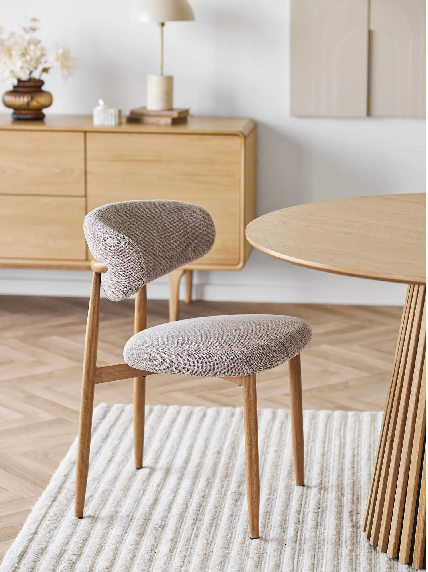 Levanto Oak valgomojo kėdė išsiskiria švaria forma, subalansuotomis proporcijomis ir natūralia spalvų estetika, kuri puikiai dera šiuolaikiškame valgomajame. Tai baldas, kuriame susijungia vizualinis lengvumas ir kasdienis komfortas.