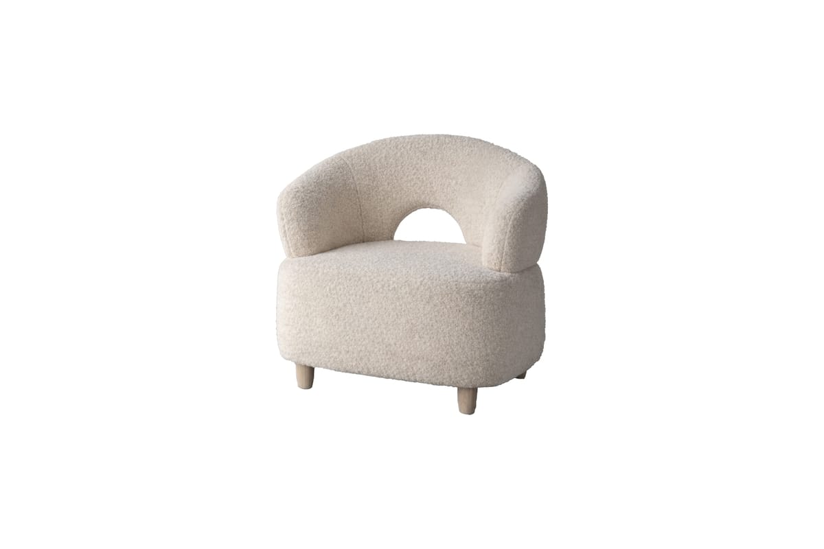 Moglas fotelis – tai baldas, kuris iš karto sukuria jaukumo ir stiliaus pojūtį. Jo apvali, minkšta forma kartu su balto bouclé audinio tekstūra suteikia interjerui šilumos, vizualinio lengvumo ir subtilios prabangos. Tai fotelis, kuris ne tik atrodo estetiškai, bet ir kviečia prisėsti bei atsipalaiduoti.