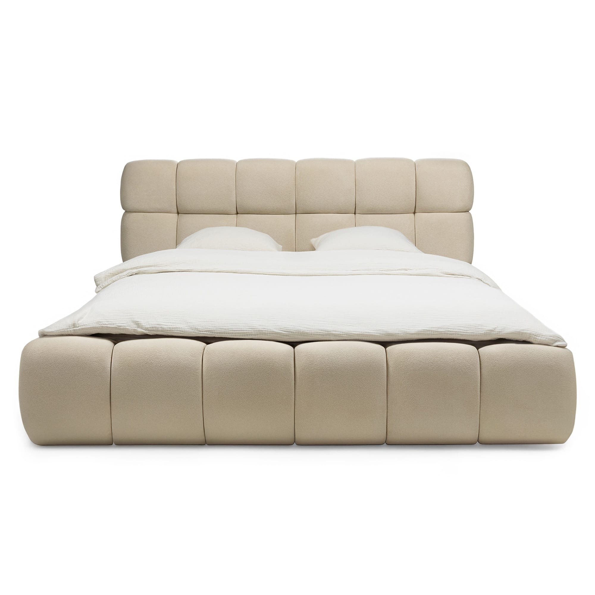 Nexo Beige – miegamojo lova, kurioje svarbi forma, paviršius ir funkcija.