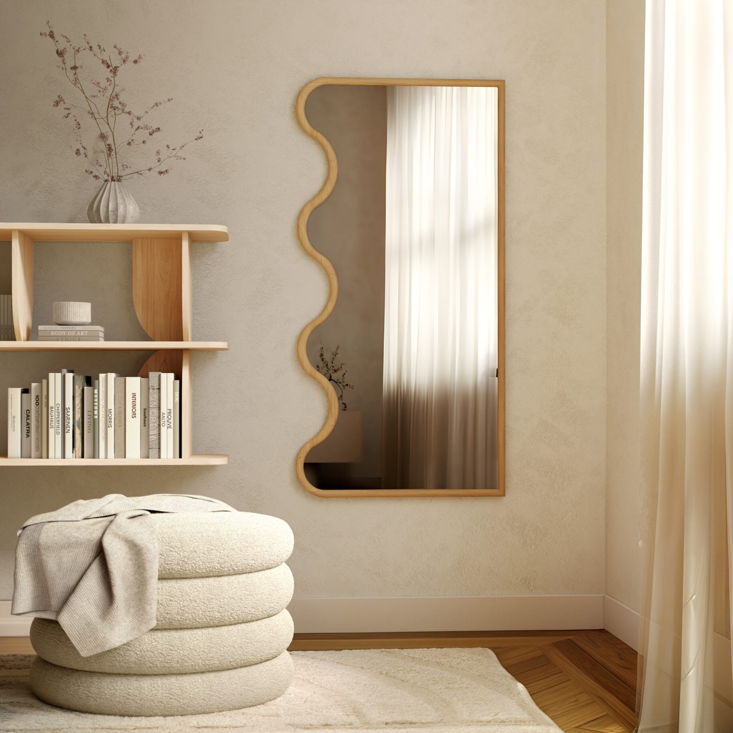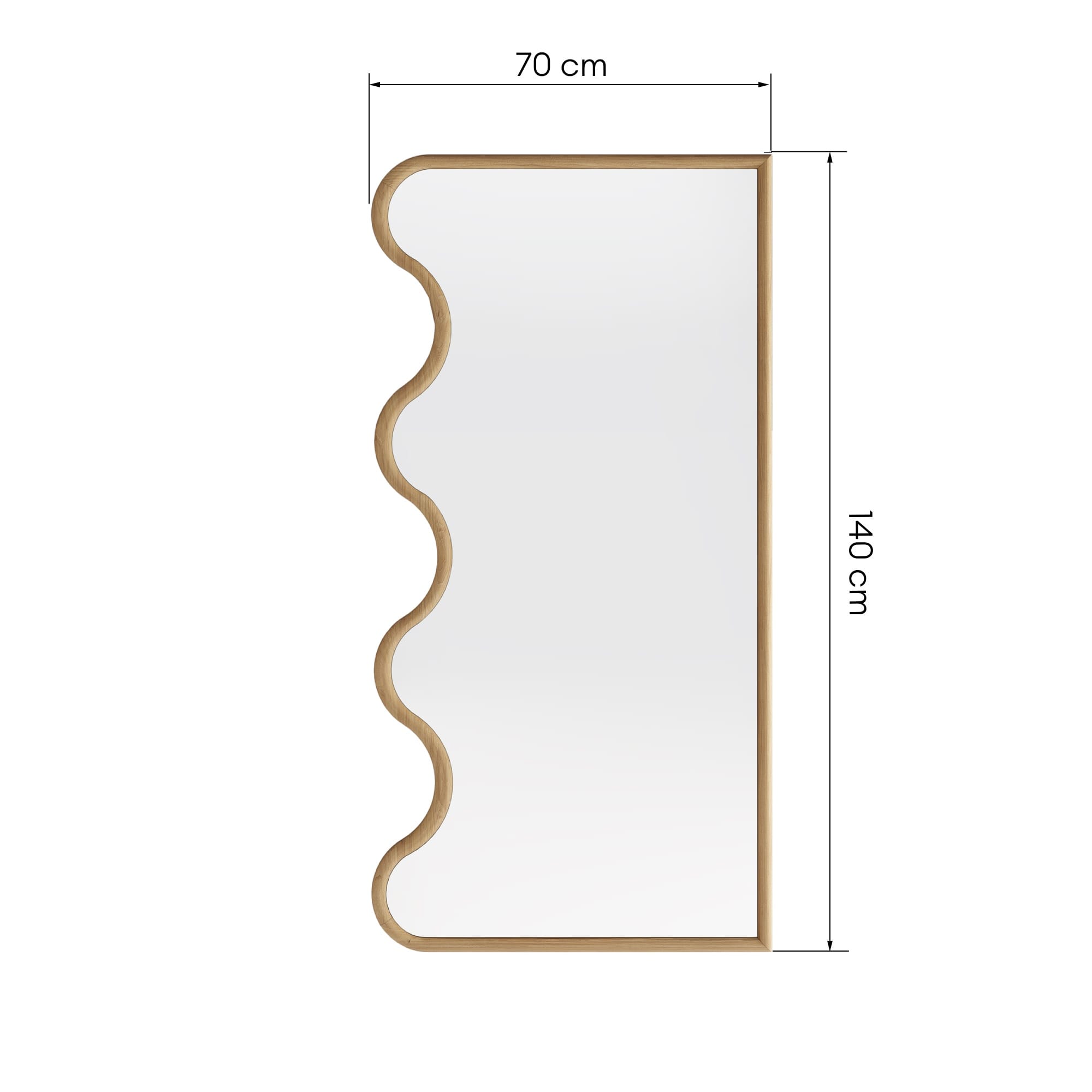 Noelie natural veidrodis – tai išskirtinis interjero akcentas, kuriame dera natūralus grožis, meistriškas darbas ir unikalus dizainas. Jo banguotas rėmas pagamintas iš tvirtos, tačiau lengvos paulovnijos medienos, kuri pasižymi subtilia tekstūra ir natūraliais atspalviais. Šis veidrodis ne tik atspindi jūsų kasdienį gyvenimą, bet ir tampa stilinga sienos dekoracija, suteikiančia kambariui jaukumo bei išskirtinumo.