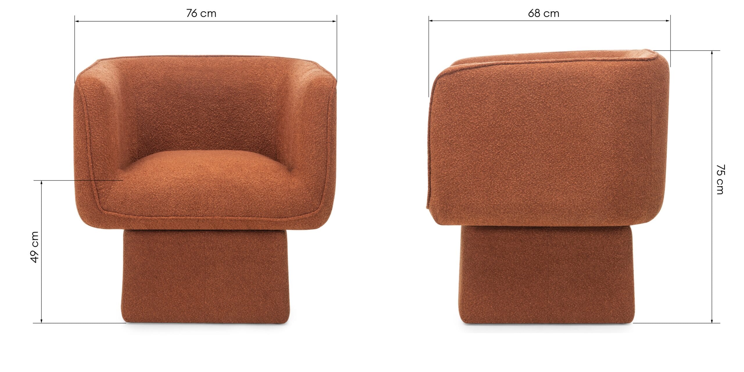 One krėslas puikiai tinka svetainei, miegamajam ar darbo erdvei, kurioje norisi turėti aiškią poilsio zoną. Dėl apvalių formų jis vizualiai sušvelnina erdvę ir tampa balansuojančiu elementu šalia griežtesnių linijų baldų. Tai baldas, kuris veikia ne per dydį, o per pojūtį.