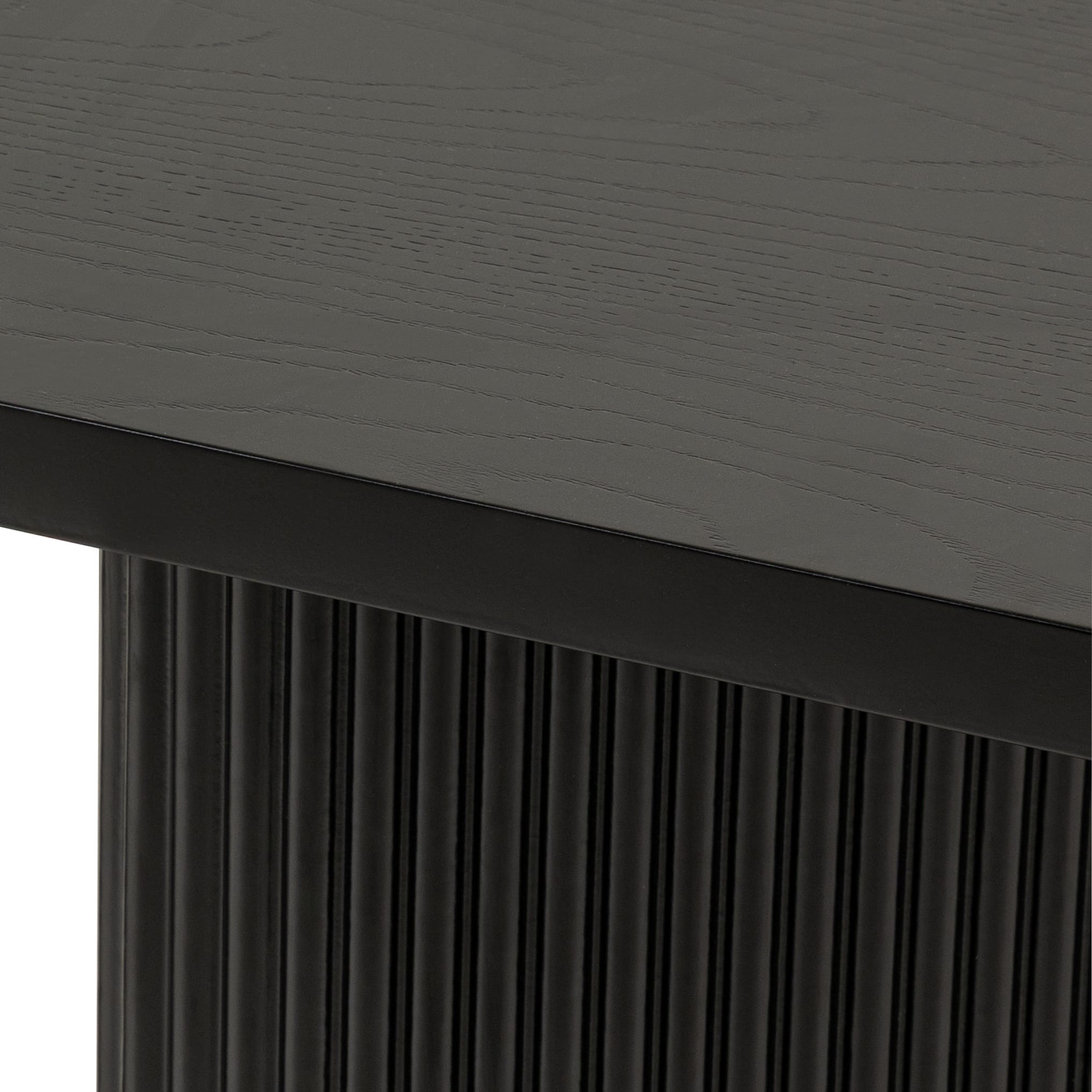 Pauline Dark konsolė – tai šiuolaikinės elegancijos įsikūnijimas, sukurtas tiems, kurie vertina detales ir harmoningą estetiką. Šis baldas derina minimalistinį dizainą ir skulptūrišką formą, suteikdamas interjerui rafinuoto charakterio.
