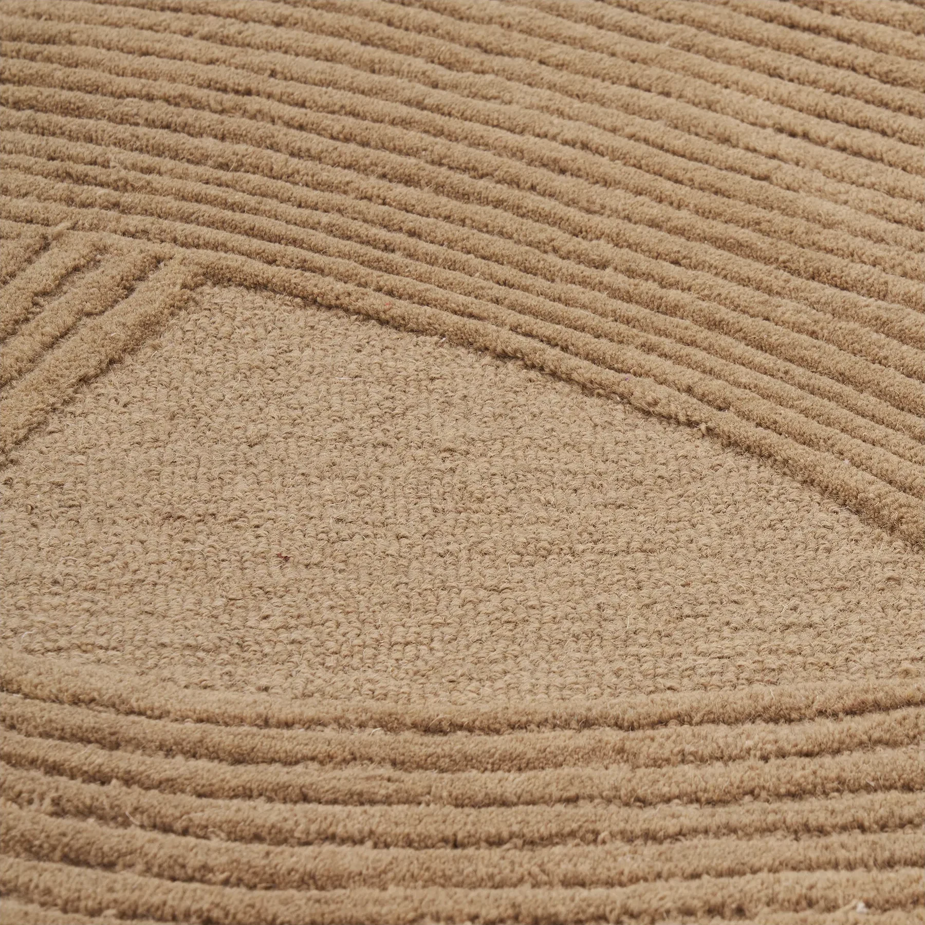 Kilimas pagamintas naudojant rankų tuftavimo techniką, kuri suteikia paviršiui gylio ir subtilaus nelygumo. Tokia tekstūra sukuria gyvą, neperkrautą vaizdą ir padeda išlaikyti natūralų interjero pojūtį.