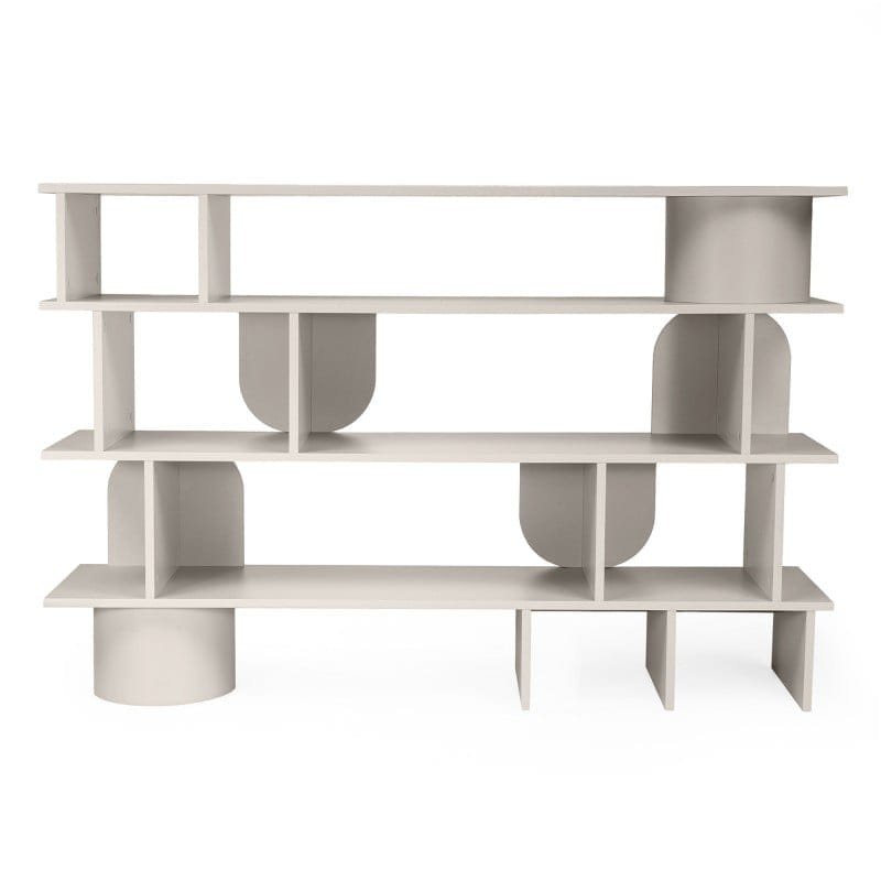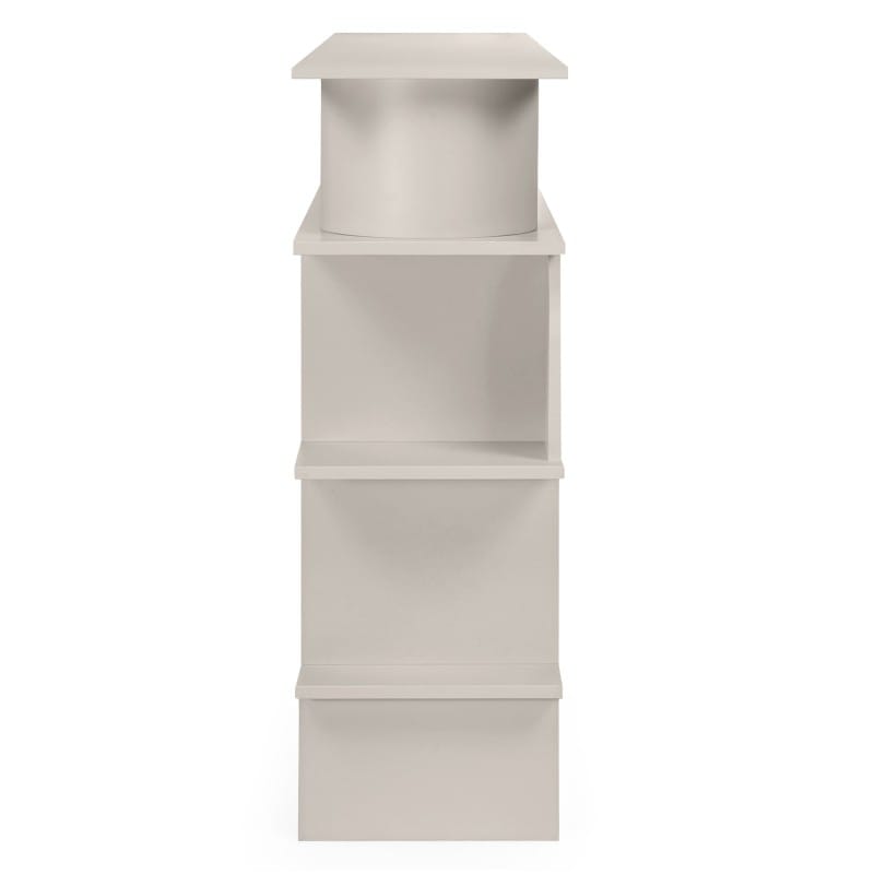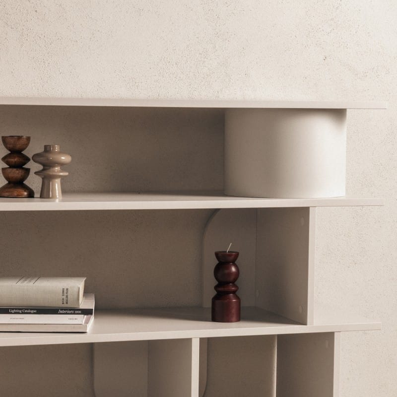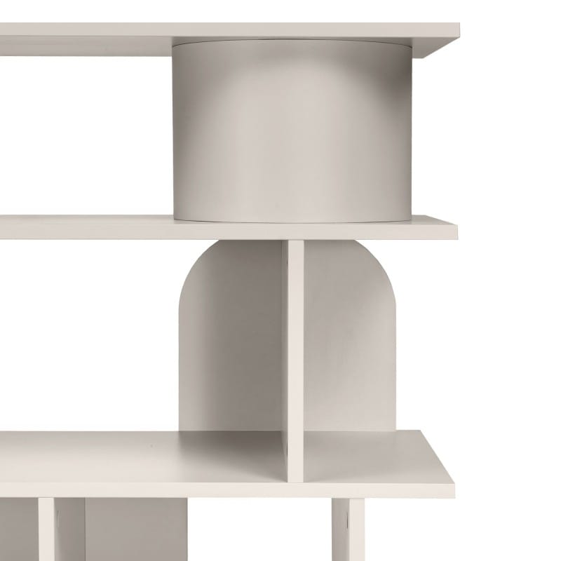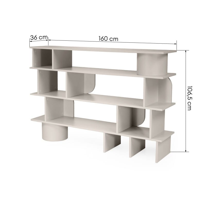 Kompaktiška, bet talpi lentyna su dekoratyvinėmis arkomis. Keturi skyriai padeda palaikyti tvarką, o dizainas papildo interjerą.