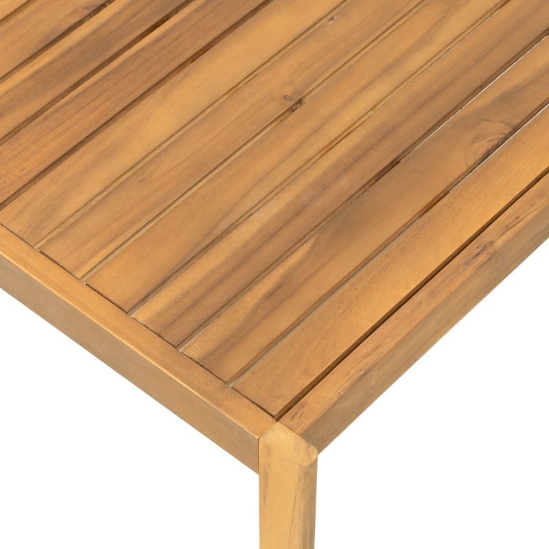 Akacijos mediena su tikmedžio apdaila kuria šiltą, solidų vaizdą, kuris iš karto atrodo brangiau nei standartiniai lauko baldai.