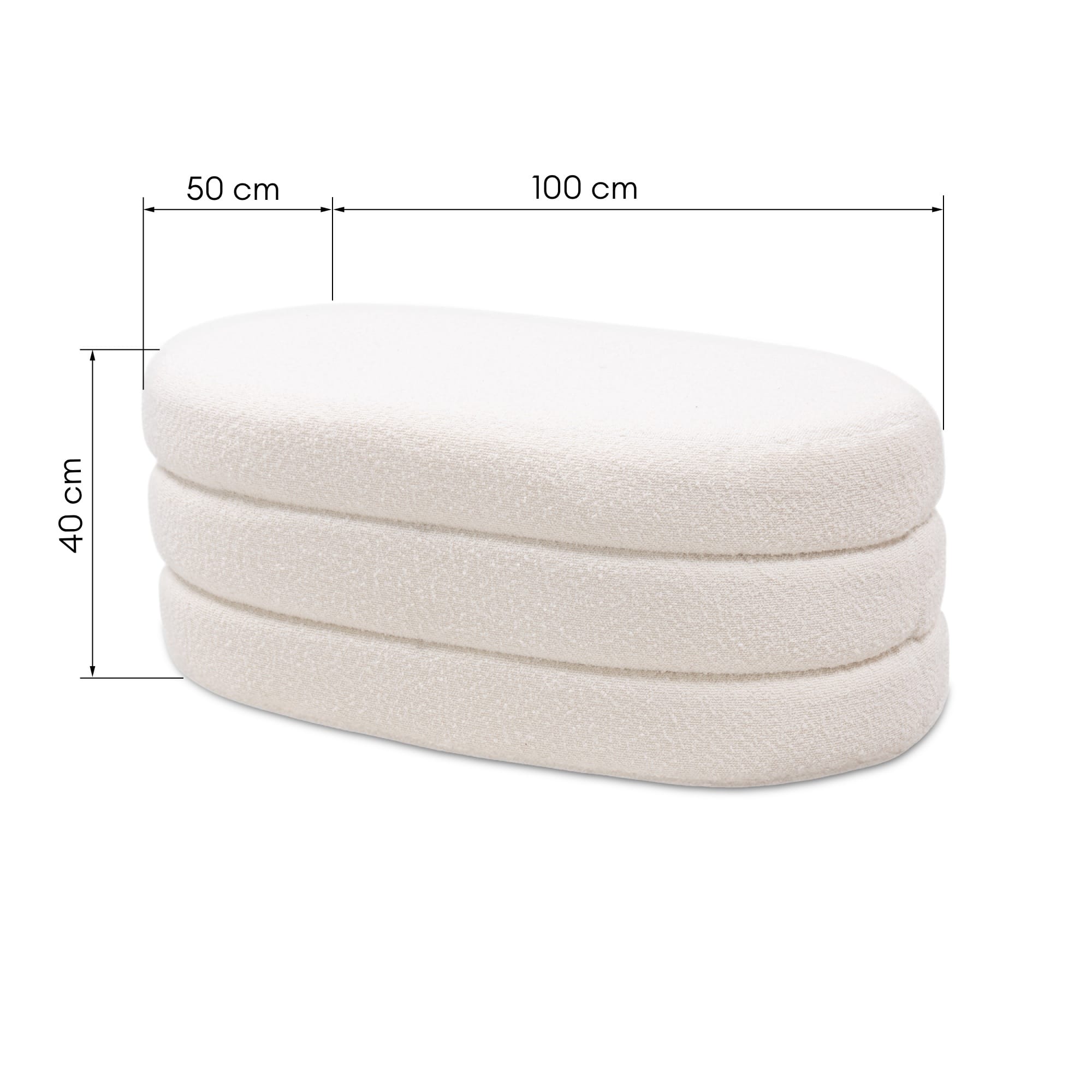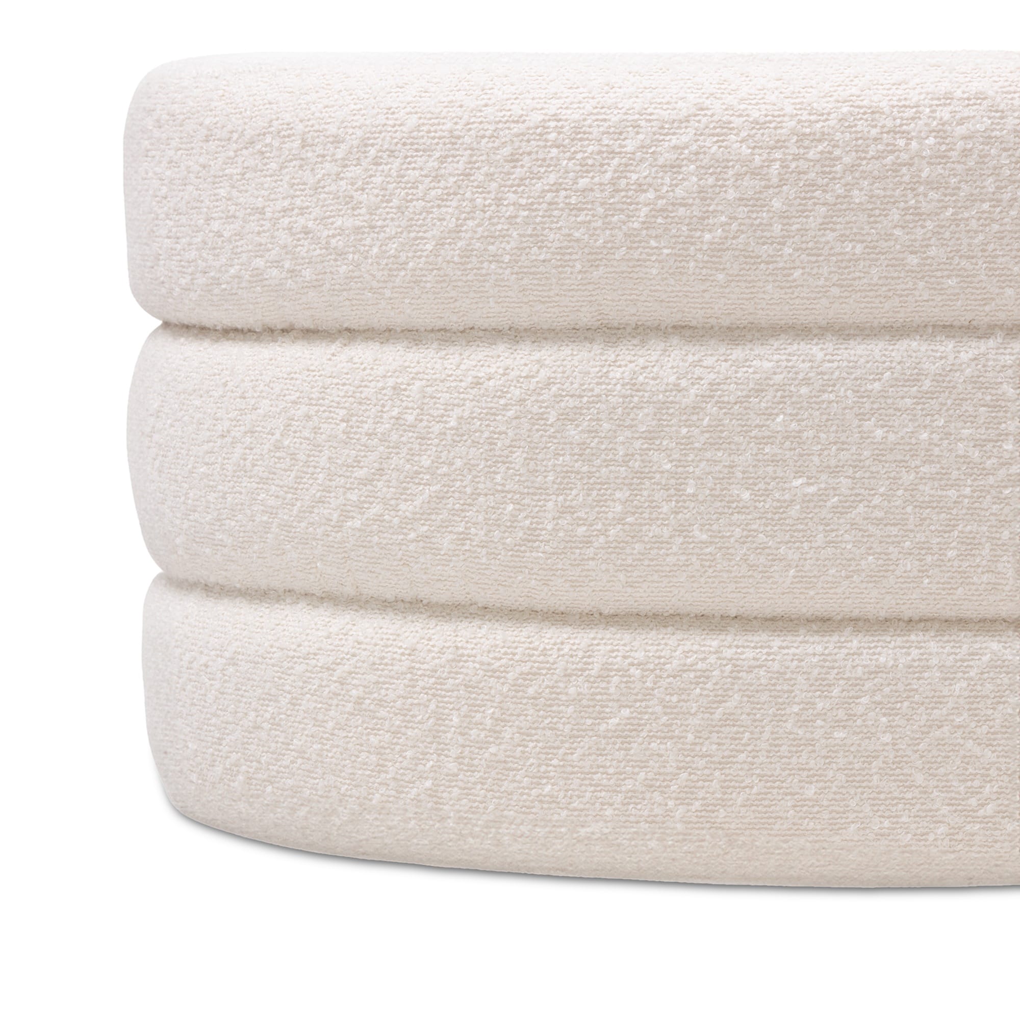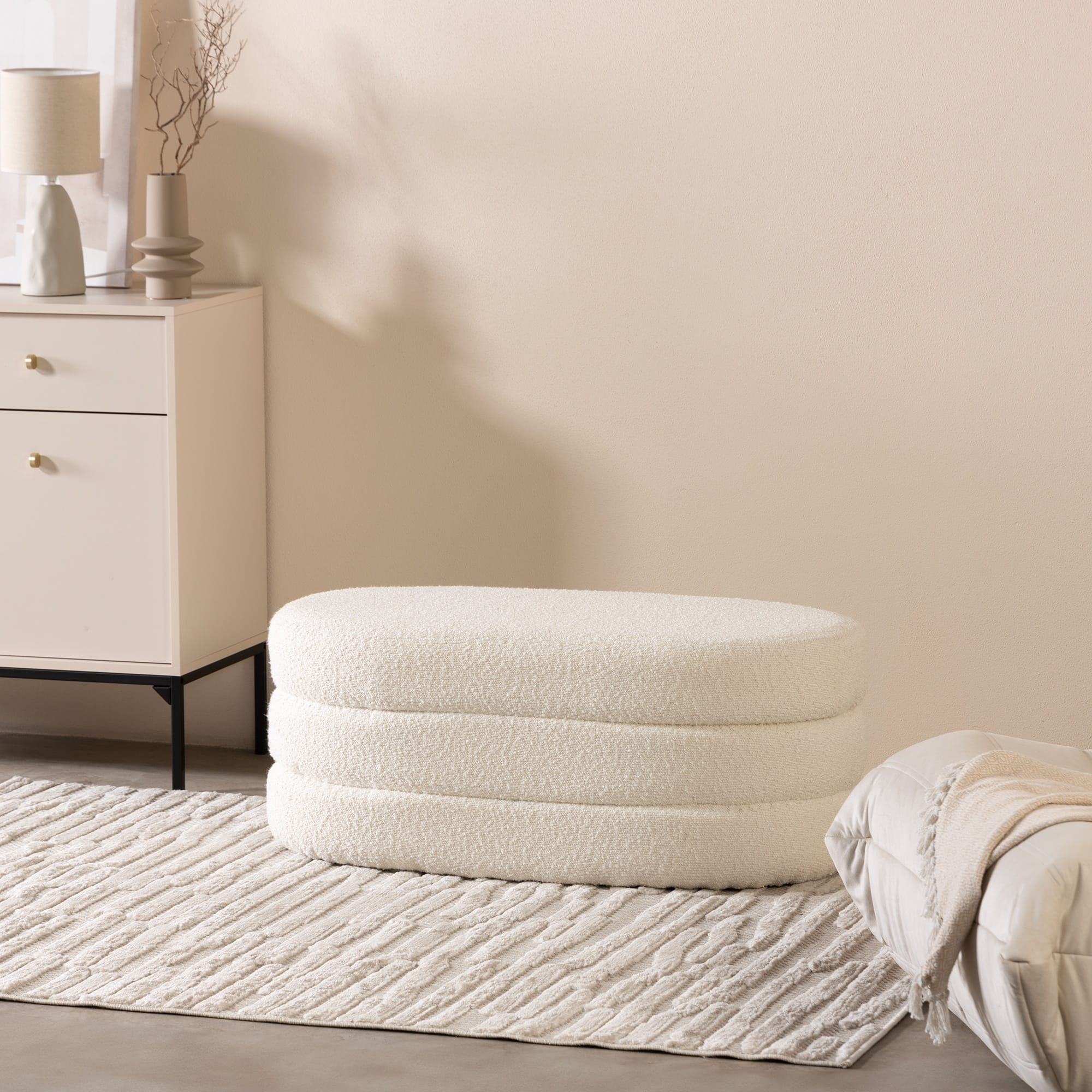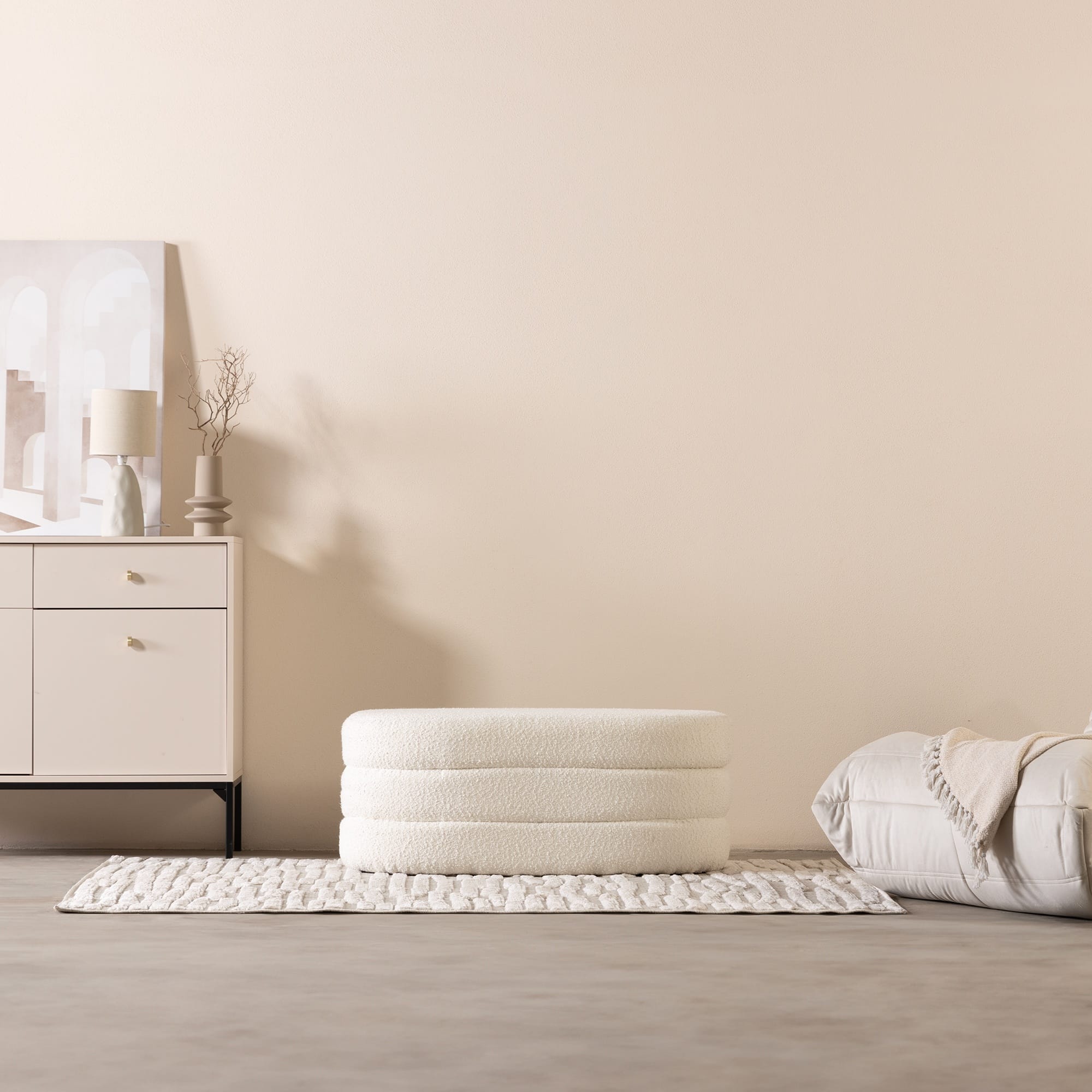 Roft – švelnus bouclé pufas, kuris sujungia stilių ir praktiškumą vienoje formoje.