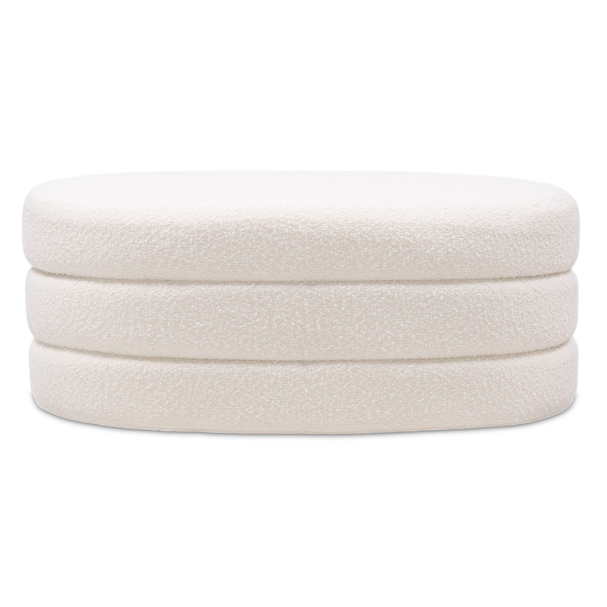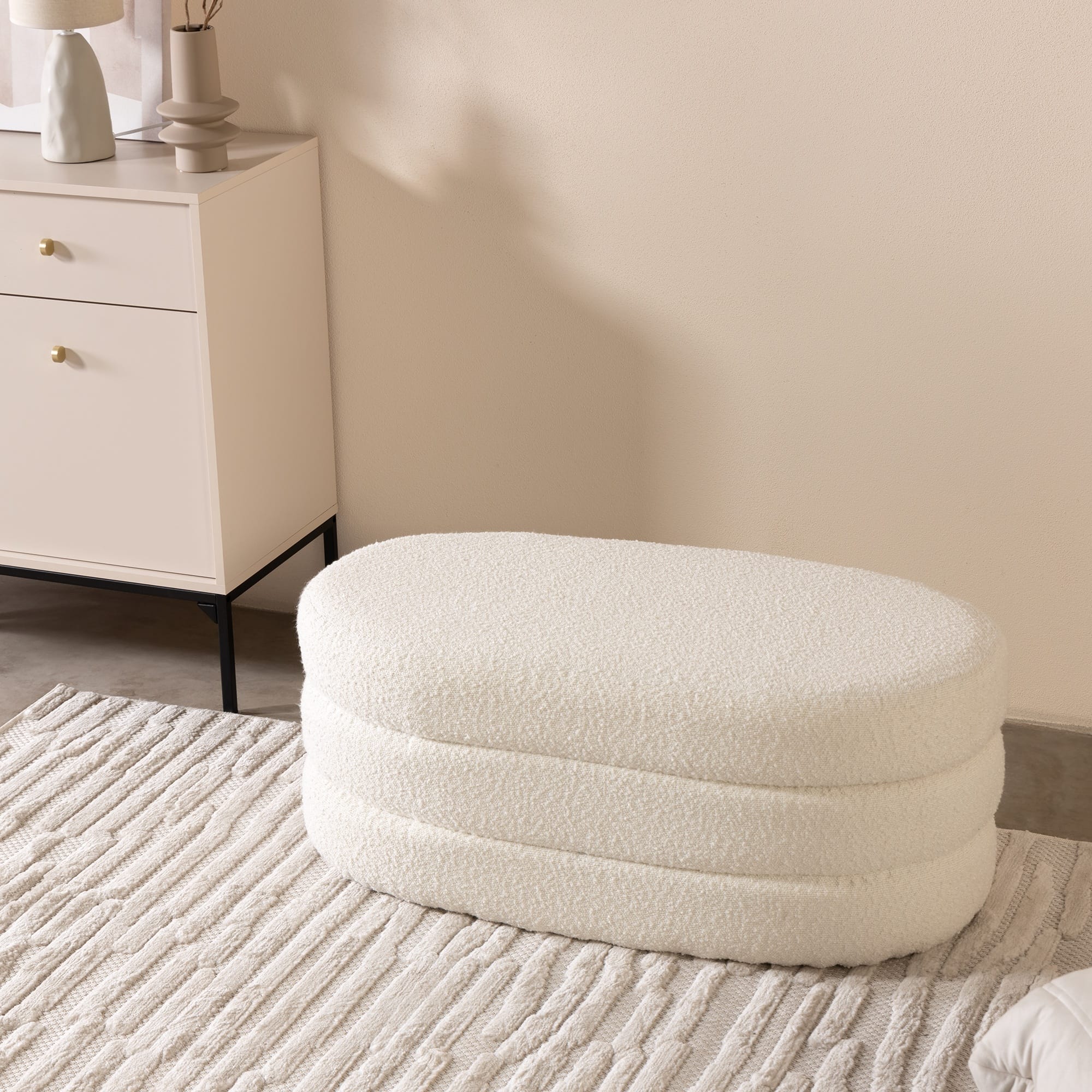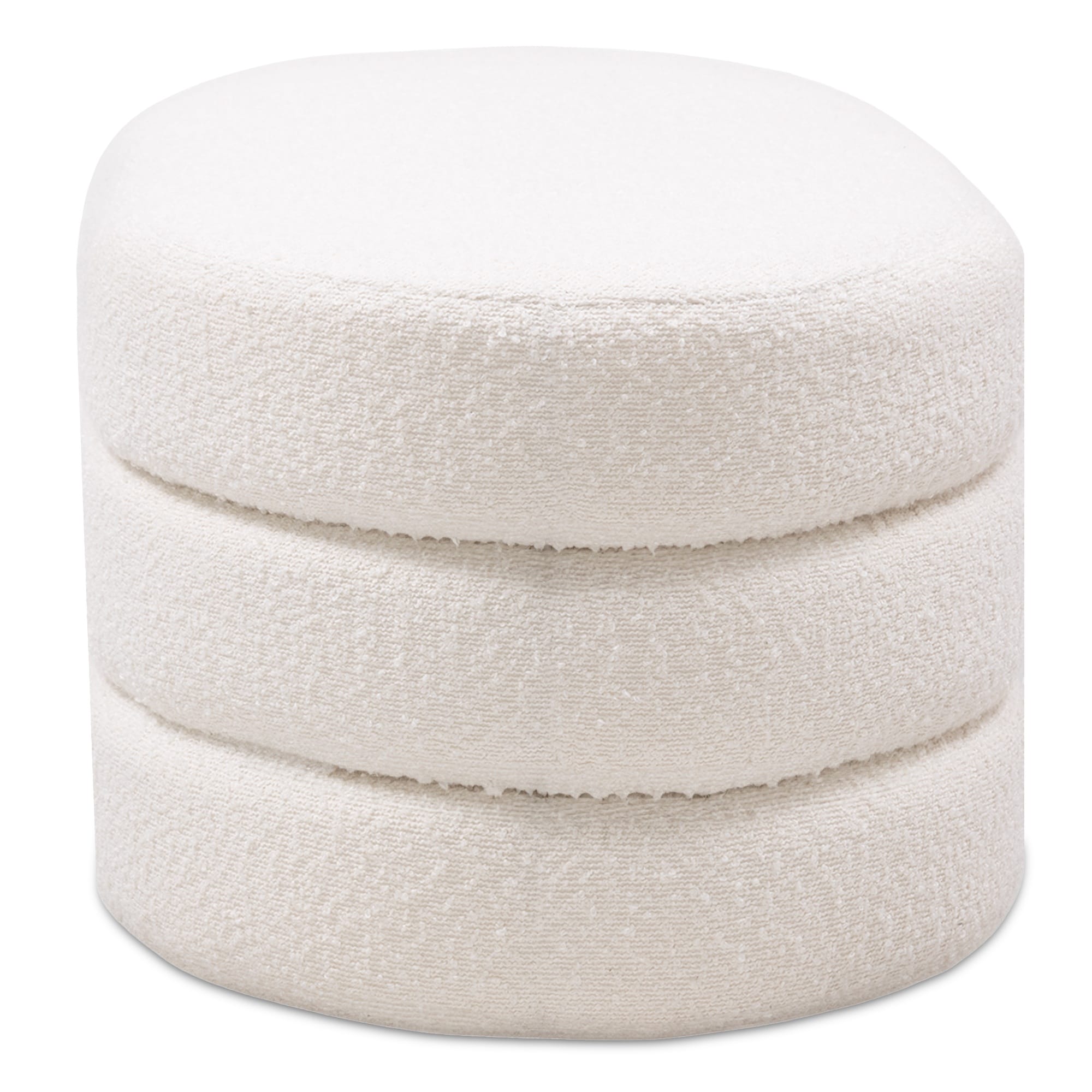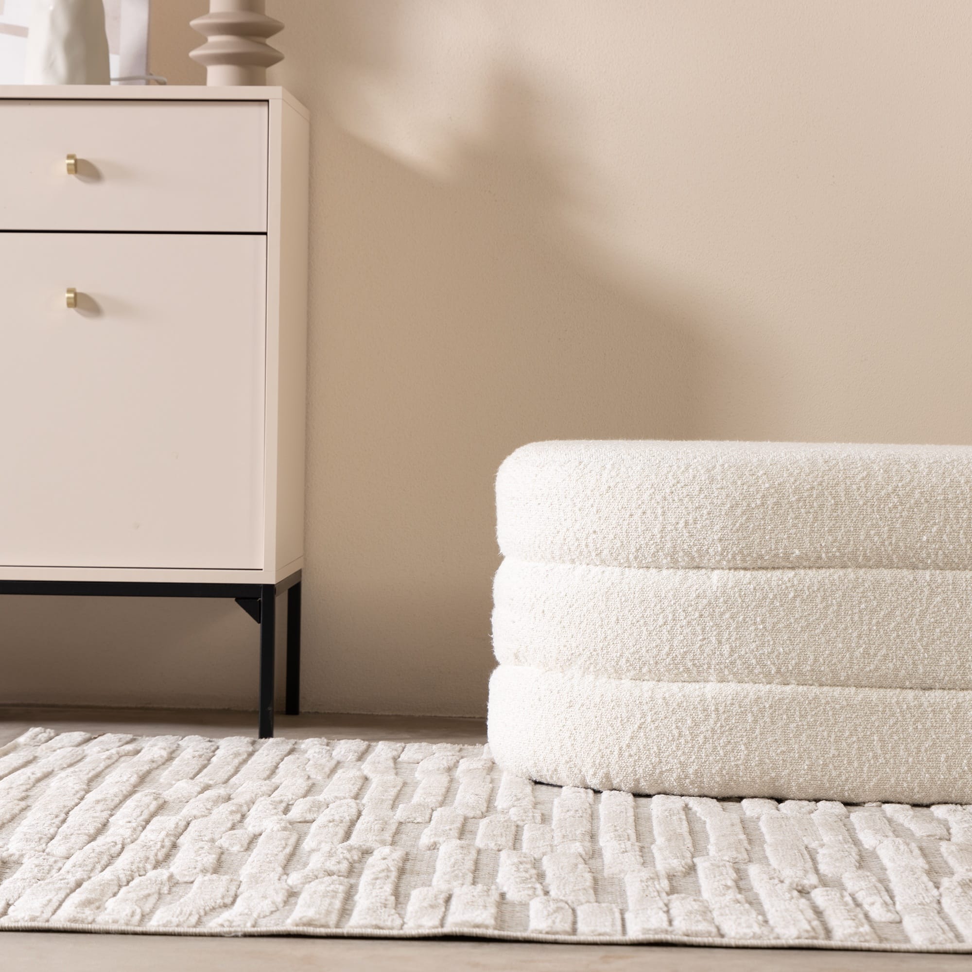 Roft – švelnus bouclé pufas, kuris sujungia stilių ir praktiškumą vienoje formoje.
