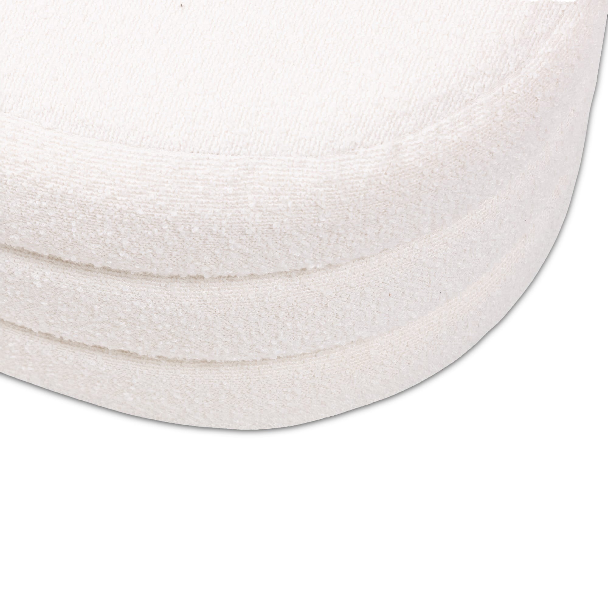 Kreminės spalvos bouclé audinys suteikia šilumos ir švelnumo pojūtį, kartu išlaikydamas modernų charakterį. Audinys ne tik estetiškas, bet ir malonus prisilietimui – todėl kiekviena akimirka, praleista su Roft, tampa jaukesnė.