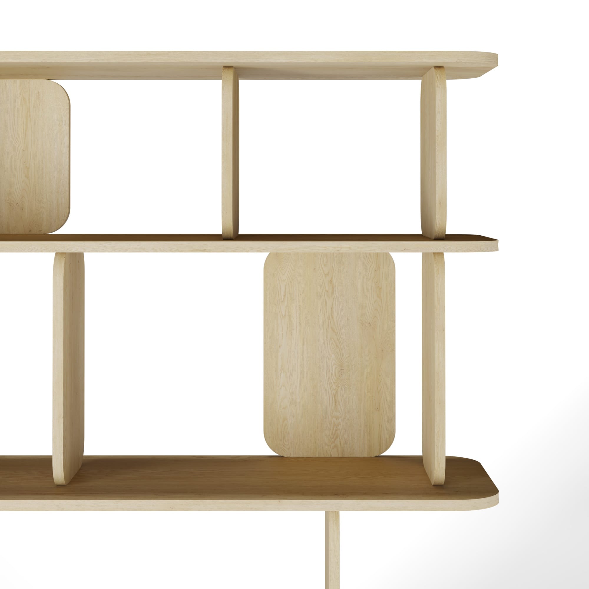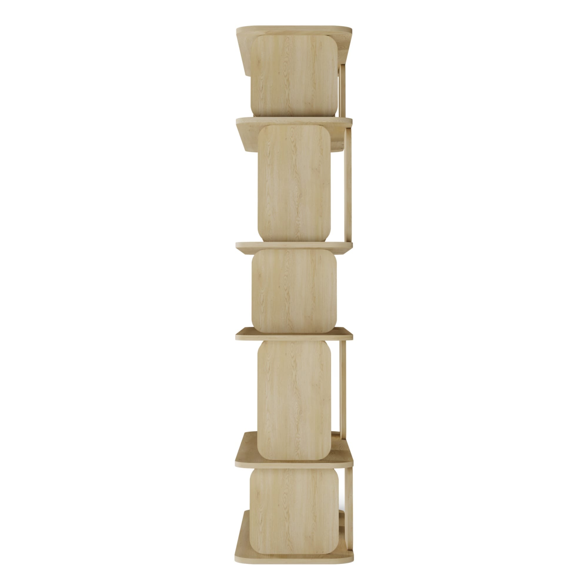 Aukštas siluetas suteikia lentynai vertikalios elegancijos. Ji neužgožia erdvės, o ją formuoja – suteikia struktūros, įveda ritmą ir sukuria vizualią ramybę. Būtent dėl šių savybių ši lentyna ypač lengvai įsilieja į natūralių tonų, skandinavišką, japandi ar modernų minimalistinį interjerą.