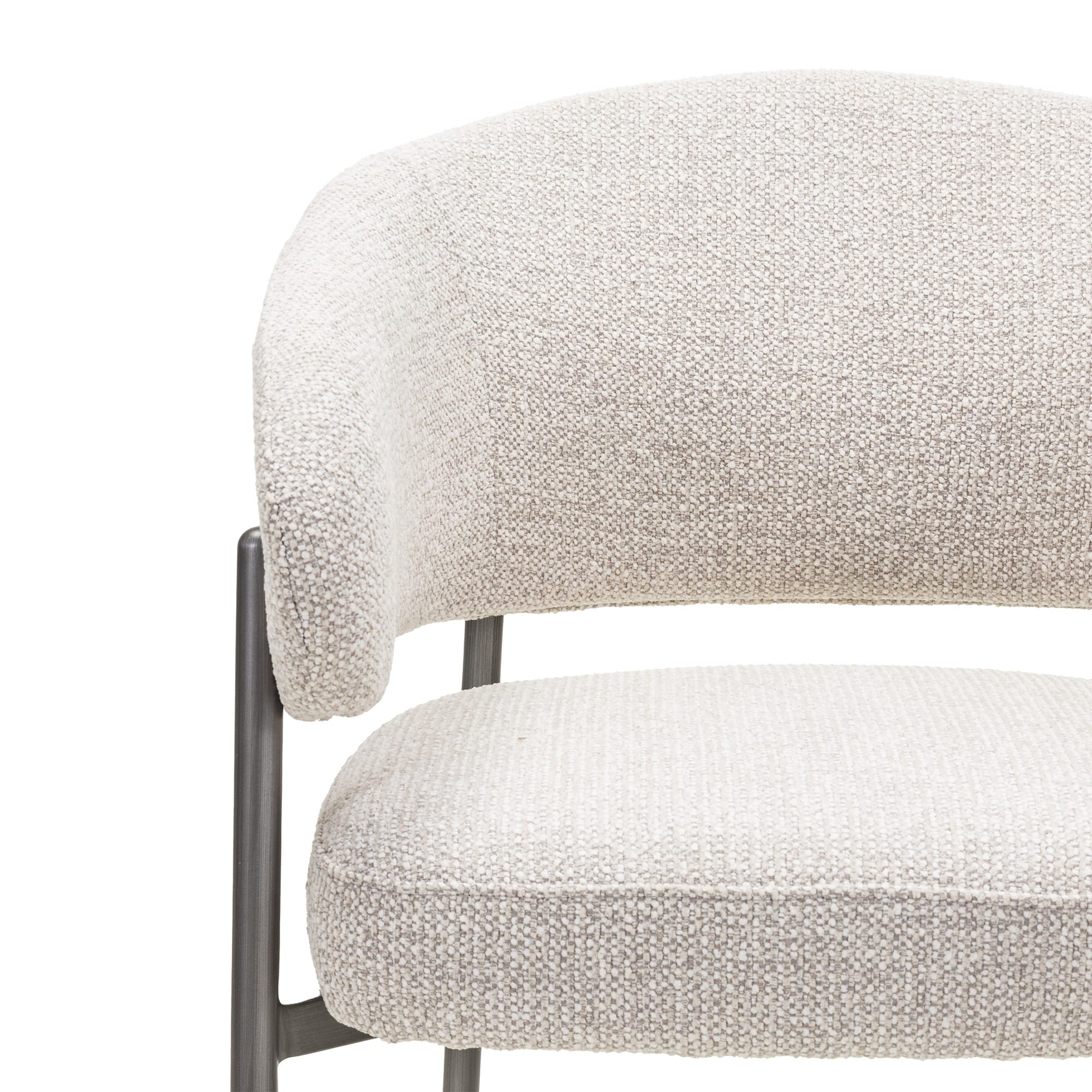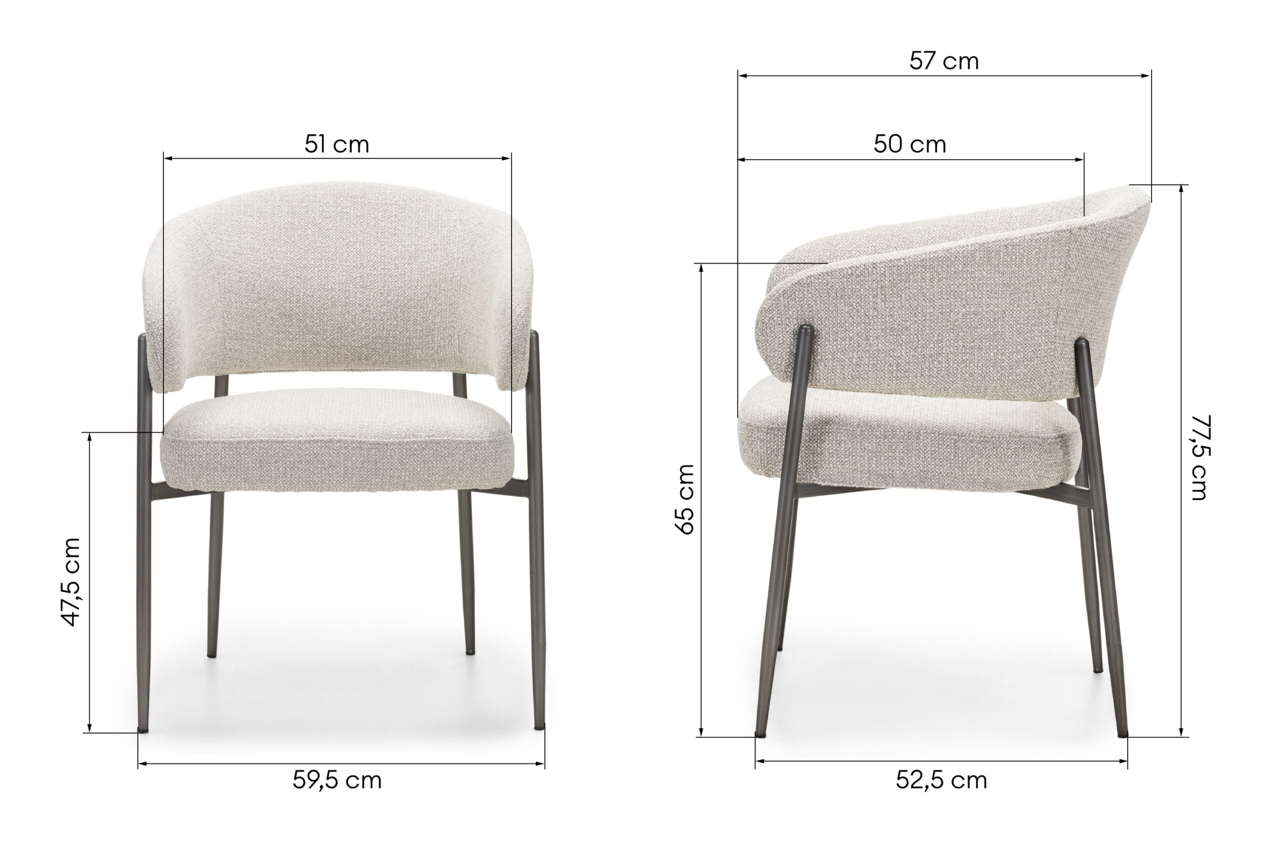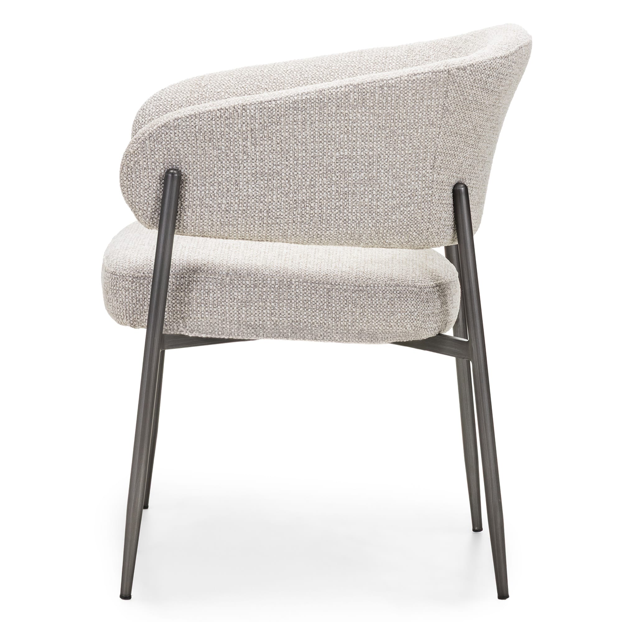 Umbra Grey Beige krėslas – tai baldas, kuriame švelnumas ir tvirtumas susilieja į harmoningą visumą. Jo dizainas atspindi šiuolaikines interjero tendencijas, kuriose dominuoja kontrastai – šviesios tekstilės minkštumas ir industrinio metalo struktūra.