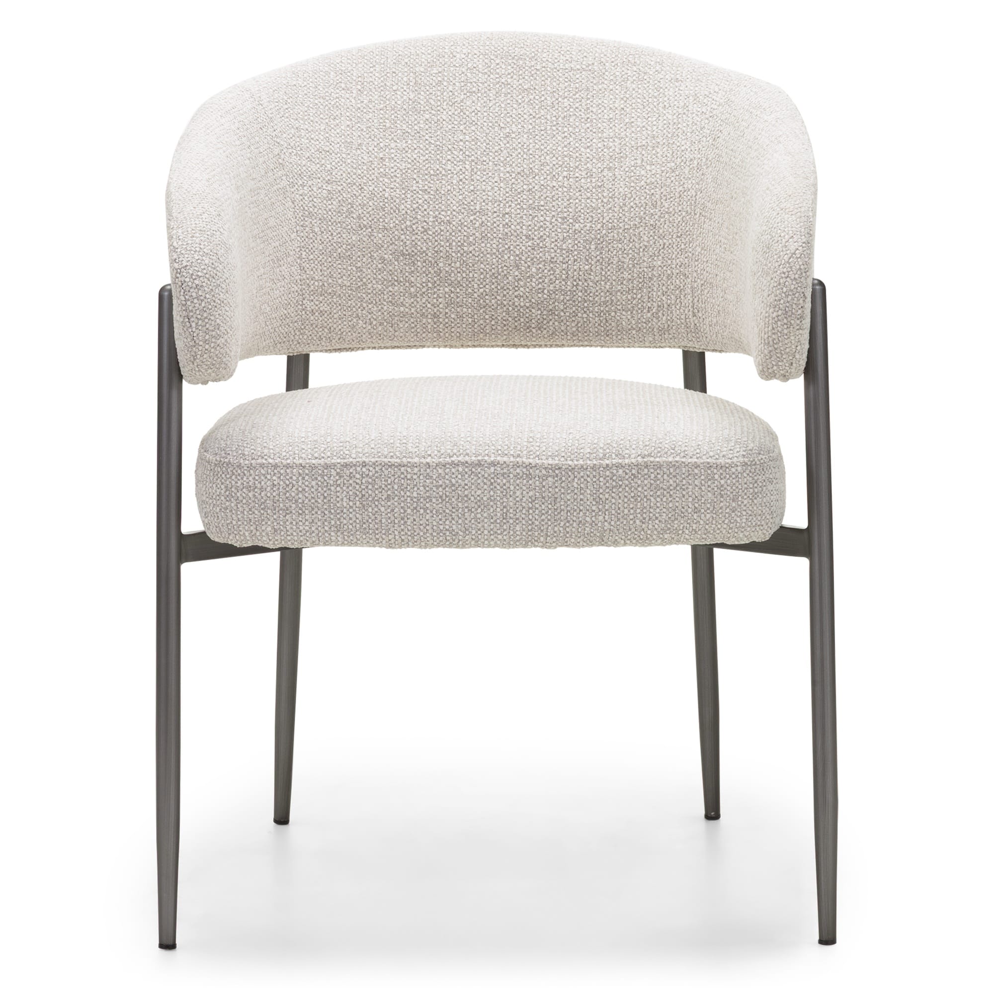 Umbra krėslas – kai šviesaus audinio švelnumas susitinka su pilko metalo jėga. Modernus dizainas, sukuriantis harmoniją tavo interjere.