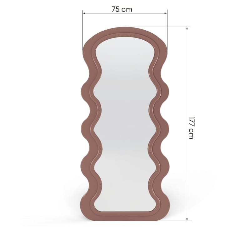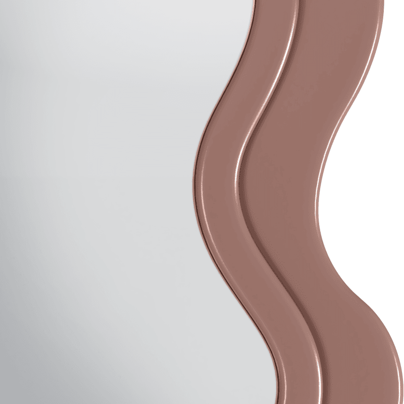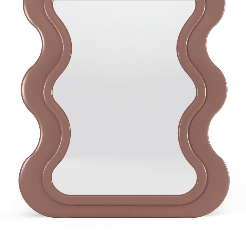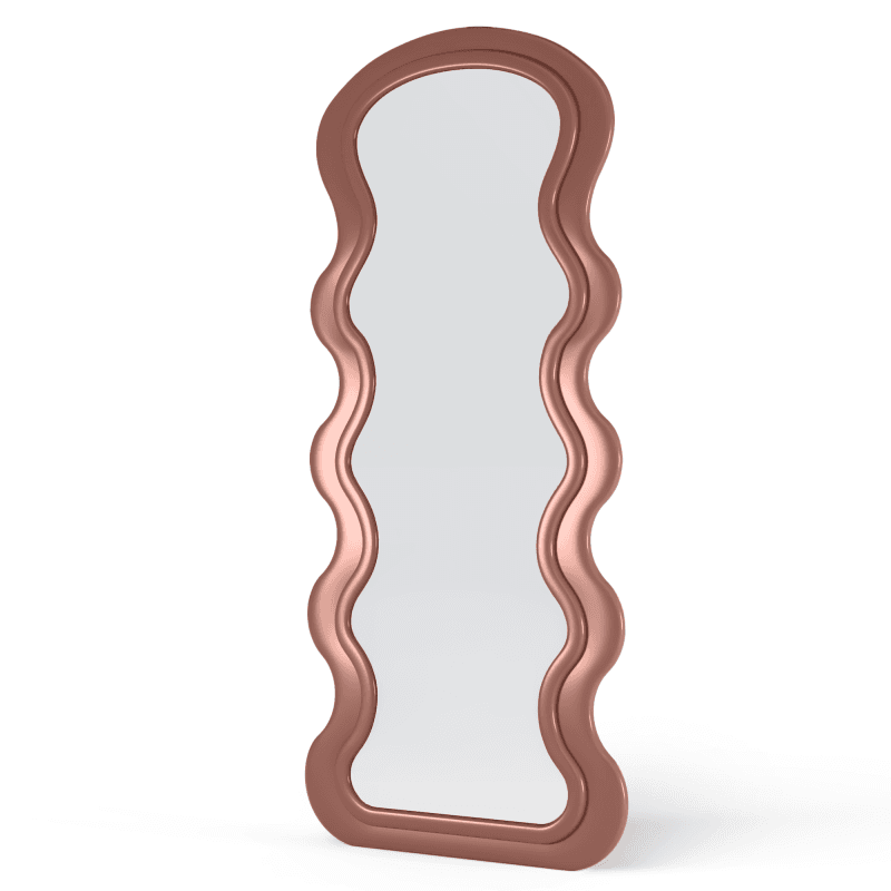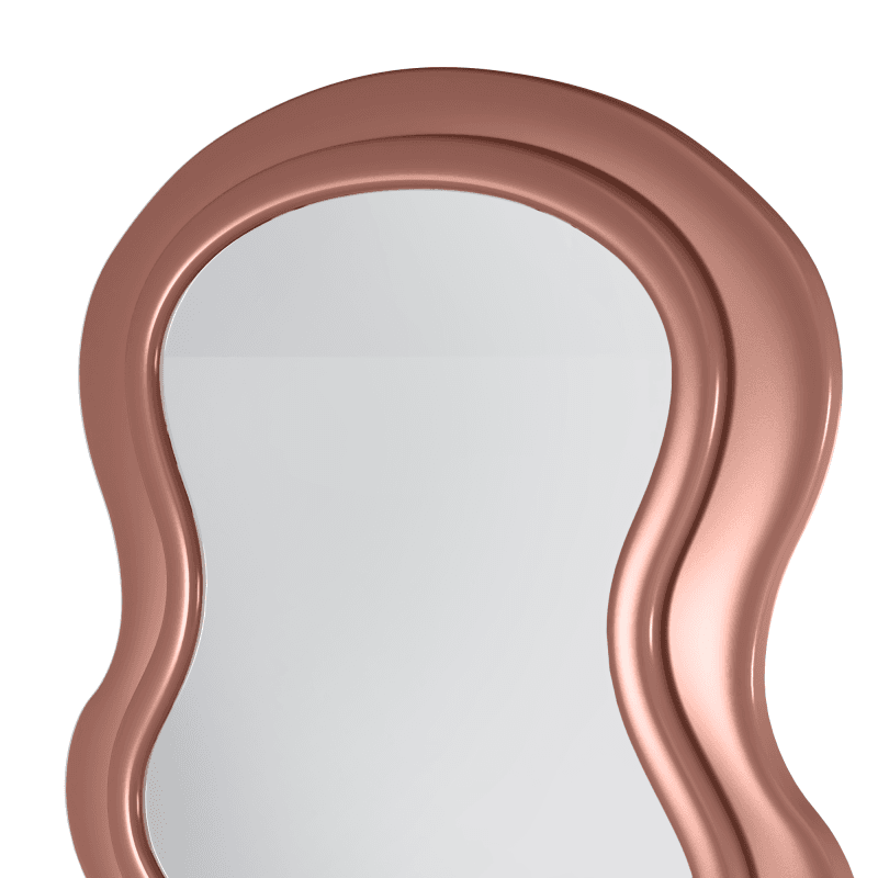 Netaisyklingas, bangos formos siluetas iškart išskiria šį veidrodį iš standartinių variantų.