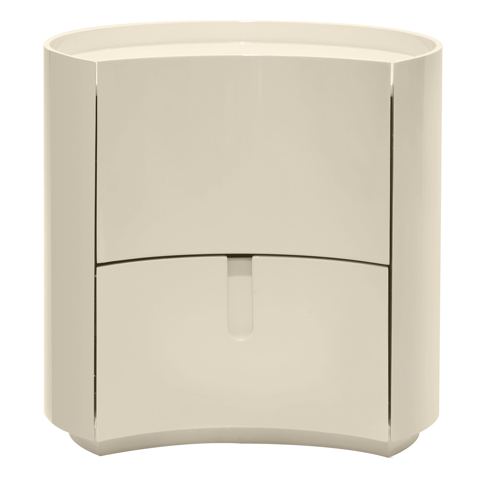 Vena Cream naktinis staliukas išsiskiria apvalia forma ir vizualiu lengvumu, kuris miegamajam suteikia ramybės ir estetinės tvarkos pojūtį. Švelnus siluetas suapvalina erdvę ir sušvelnina aštresnes interjero linijas. Šviesi cream spalva, papildyta subtiliu baltu tonu, atrodo švari, bet ne sterili, todėl baldas lengvai įsilieja į skirtingas aplinkas.