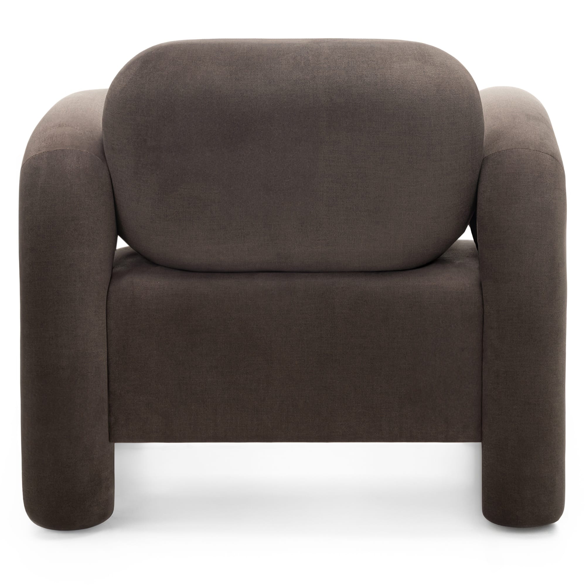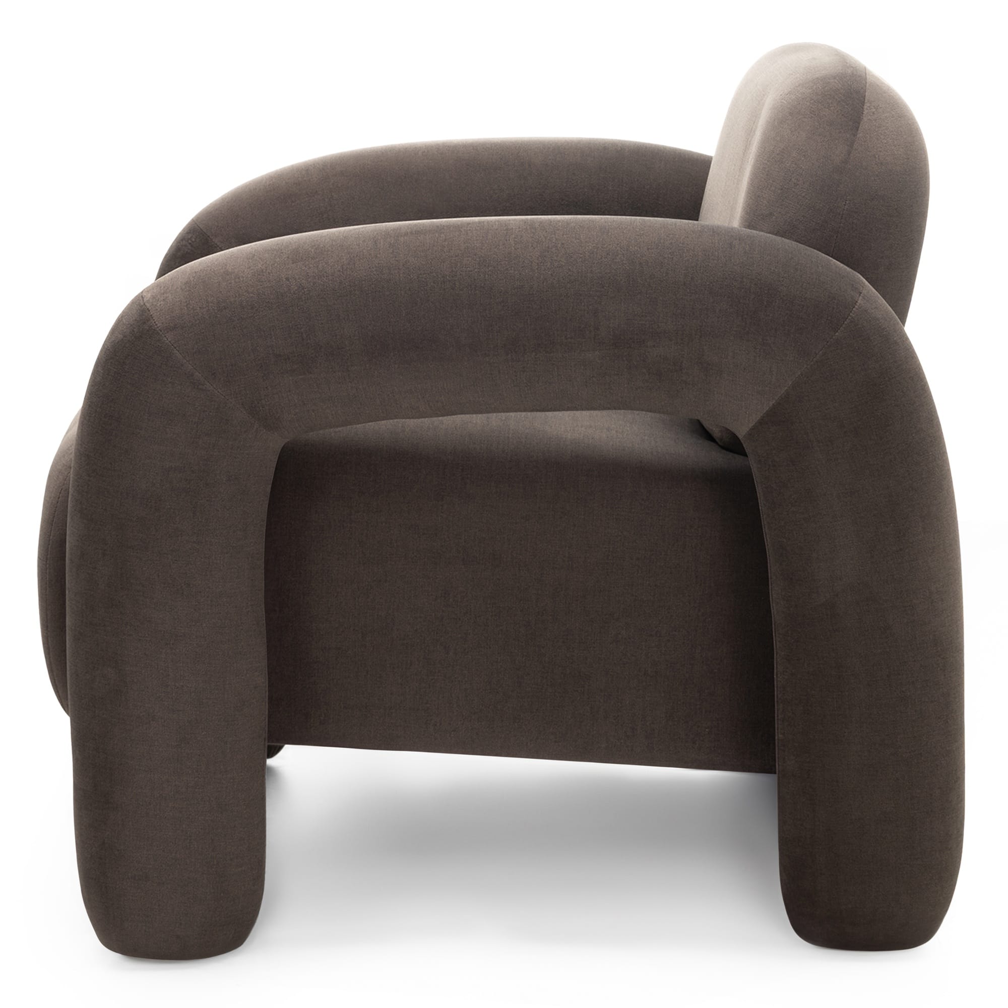 Vico Brown fotelis – sodraus aksomo šiluma ir apvalios formos, kurios paverčia kiekvieną poilsio akimirką stilinga patirtimi.